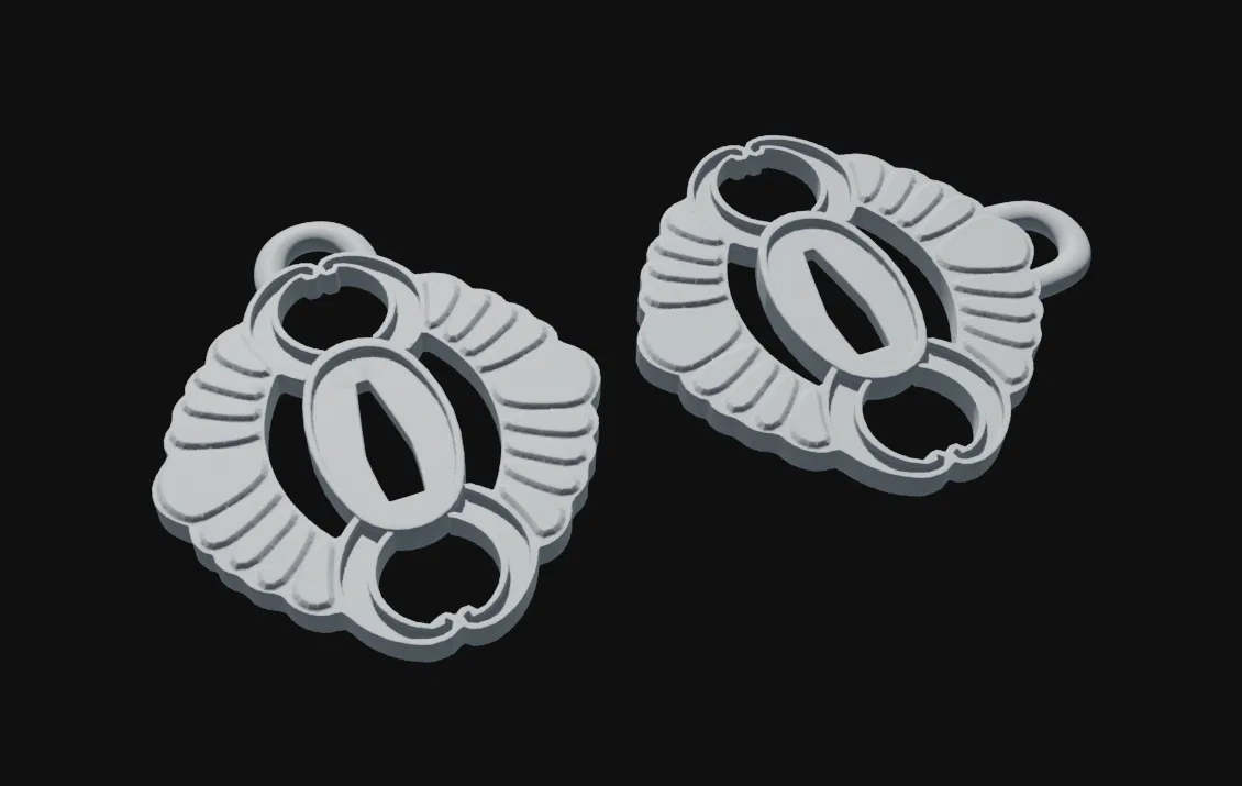 Phiên bản móc khóa của tsuba Magatsumi trong Kagurabachi. Có 2 thiết kế (ngang và dọc), mỗi thiết kế đều có bản tách đôi để in phẳng hơn. File gồm OBJ và STL, sẵn sàng để bạn in ngay.