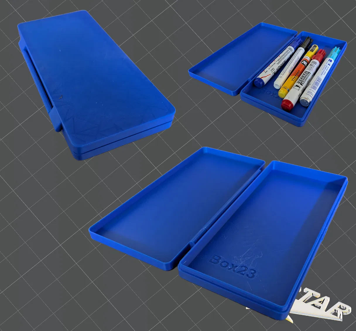 Mẫu hộp Box 200 x 90 x 18,2 mm dạng print in place, không cần vật liệu bổ sung. Kích thước lòng trong 193,6 x 83,6 x 15 mm. Gợi ý in PLA+, layer 0,2, infill 20% honeycomb, 3 walls, không cần support.