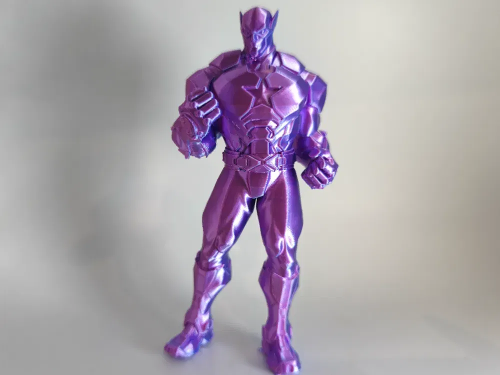 Mẫu Marvel Rivals: Captain America – người hùng ai cũng cần. Thiết kế theo workflow hybrid: tạo base bằng Tripo 3D AI, tinh chỉnh chi tiết trong Blender rồi sửa mesh và làm solid bằng Meshmixer để sẵn sàng in 3D.