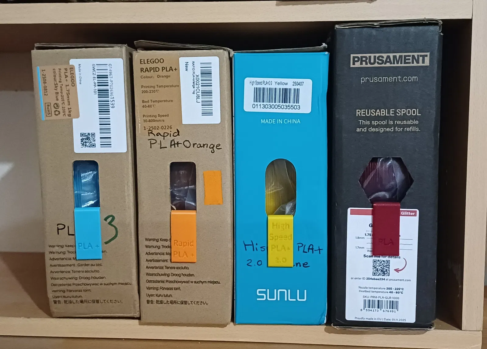Tested and functional on the boxes of Sunlu, Elegoo, Prusament and certainly compatible with many others.