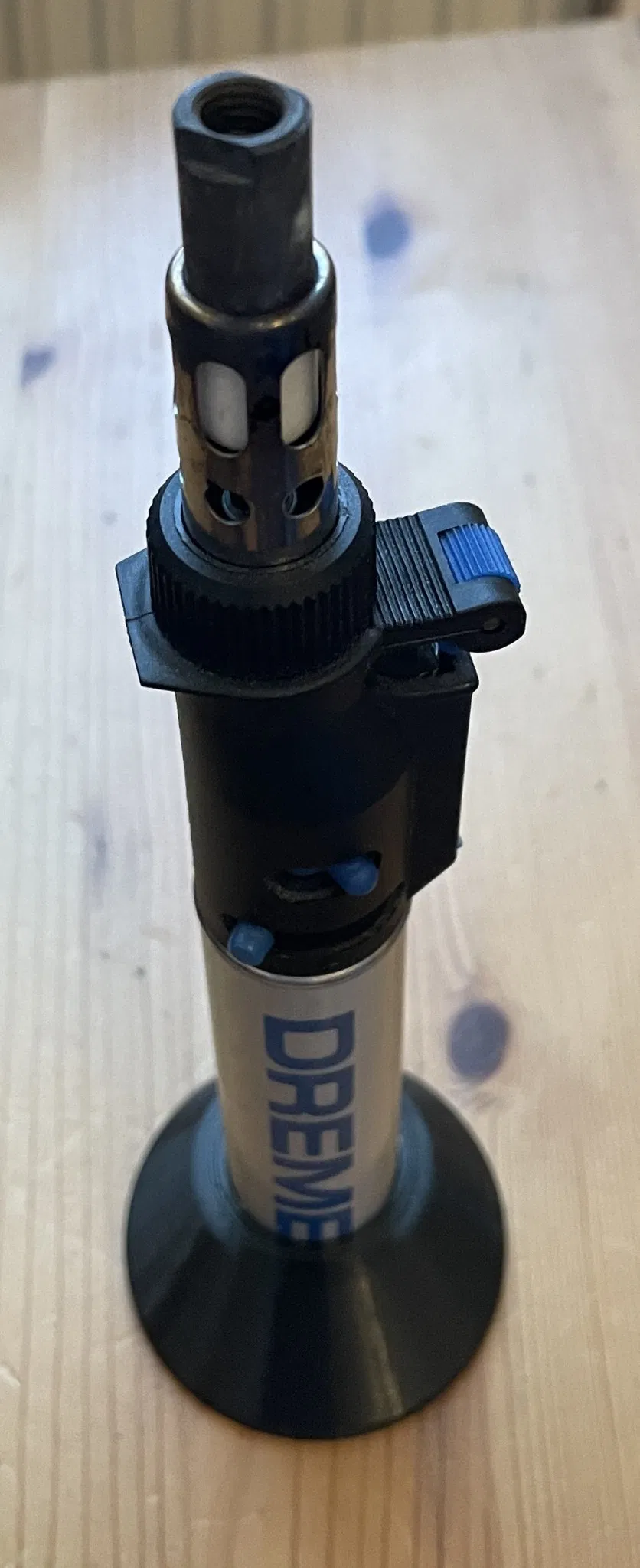 Ở giữa đáy có một lỗ, để bạn có thể tiếp gas cho mỏ hàn mà không cần tháo chân đế.