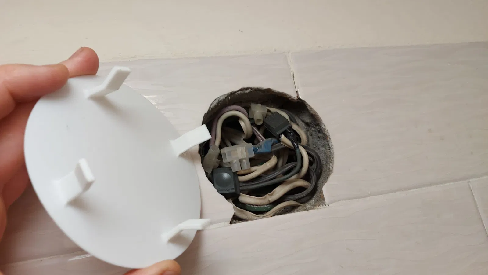 Nắp che hộp nối điện được thiết kế để nằm sát phẳng hoàn toàn với mặt tường.