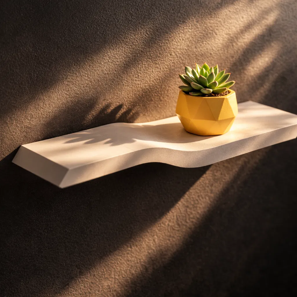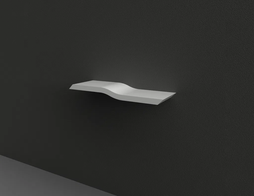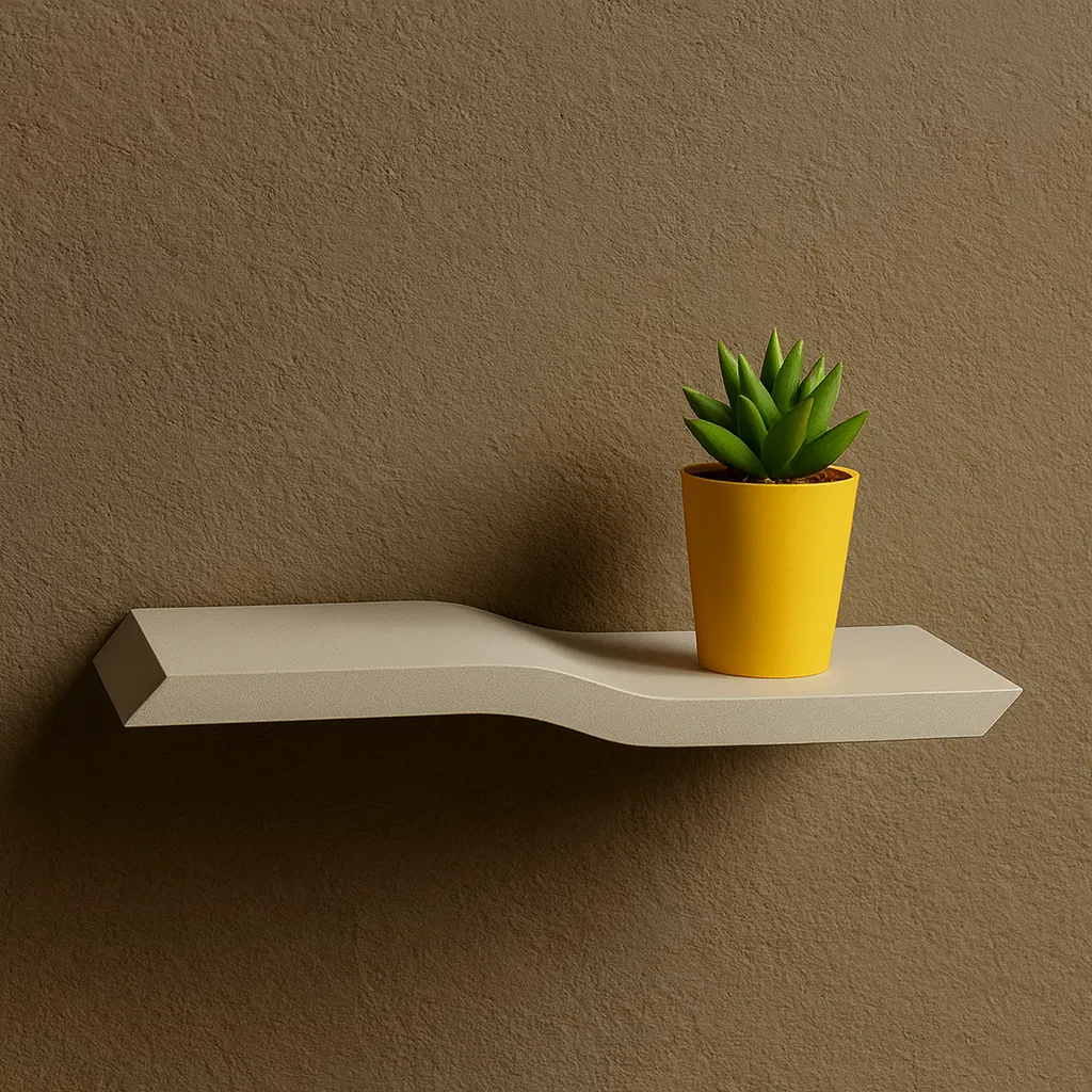 Kệ hiện đại này được thiết kế để in 3D và treo tường mà không cần lộ pát/giá đỡ. Đường cong mềm kiểu gợn sóng tạo cảm giác tối giản và sang, vừa đẹp mắt vừa thực dụng cho nhiều không gian.