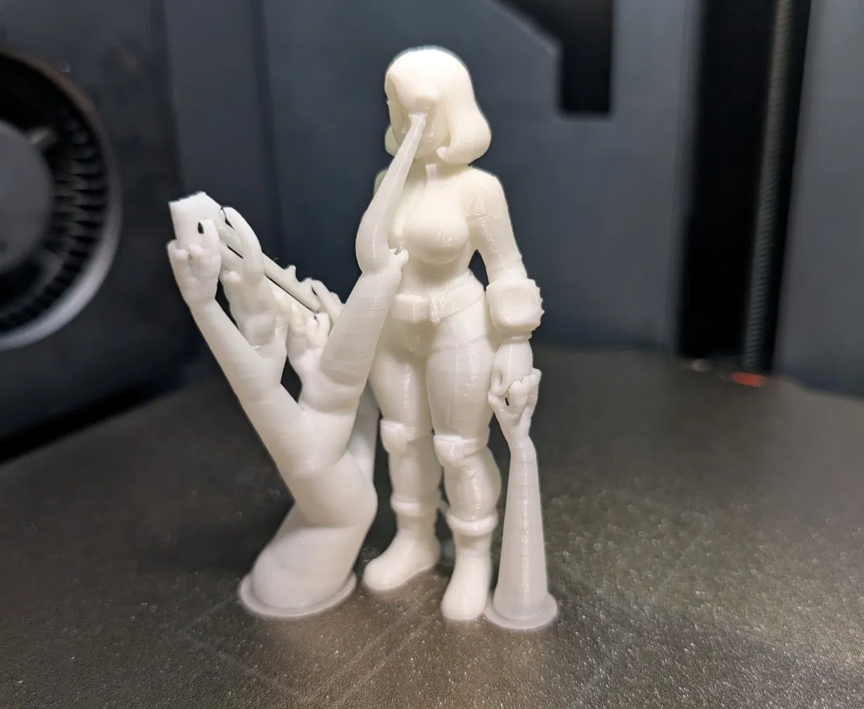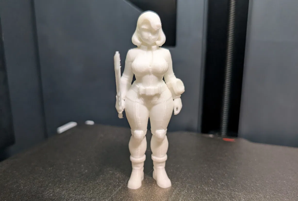 Cô nàng vault dweller “thick” trong Fallout, sẵn sàng lao vào combat. Có 1 bản kèm base, còn bản không base thì đứng cũng khá vững. Lúc gỡ support quanh thanh kiếm và bàn tay nhớ cẩn thận nha. Có thể cần bấm vài nhát và lắc nhẹ chút xíu. Nếu cần thì giữ phần đầu thanh kiếm cho chắc. Chúc in vui vẻ!