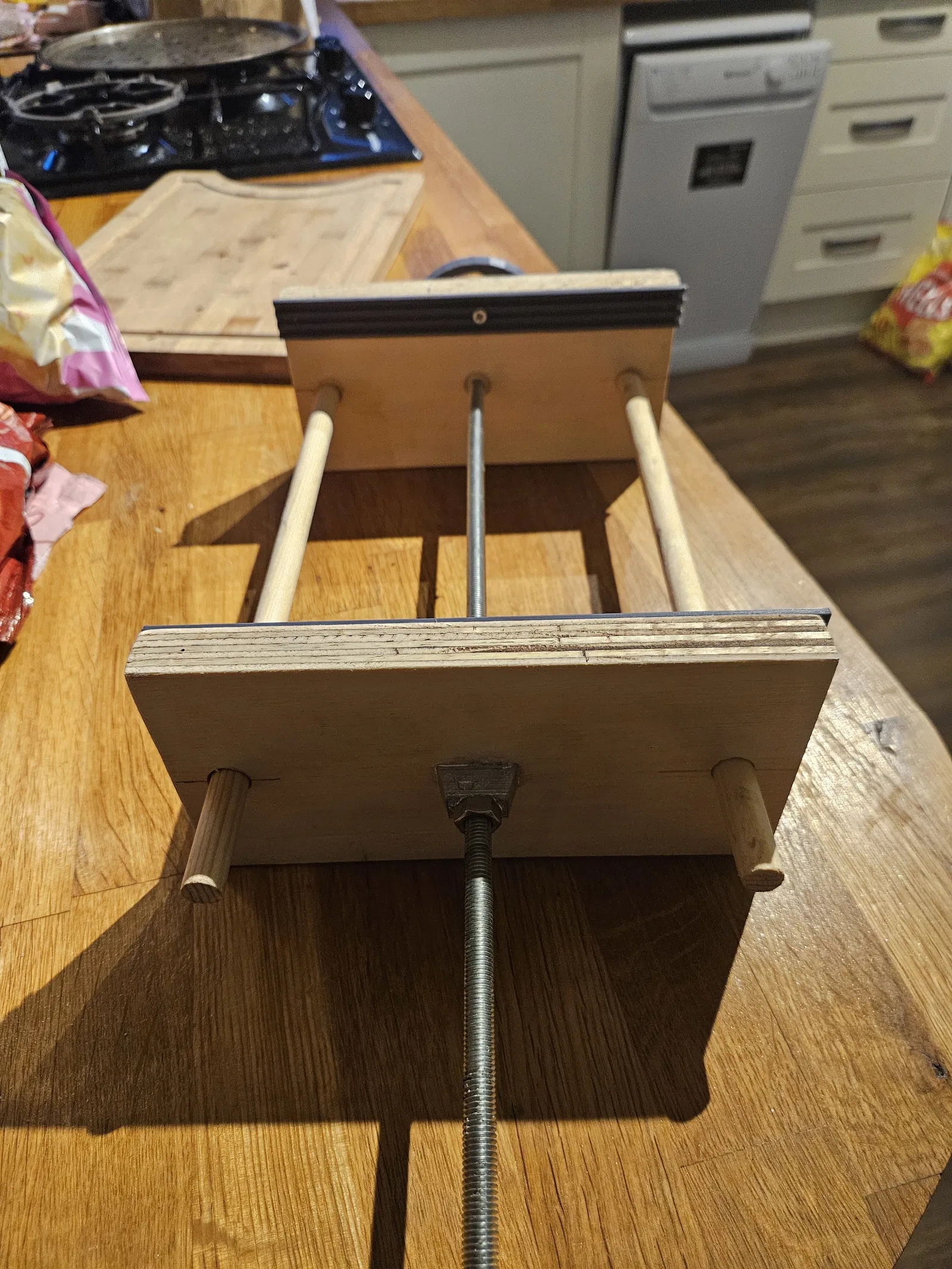 Mình tính chỉnh (tweak) cái vice của mình và đặt bu-lông nằm bên trong gỗ để nó không bị lỏng ra.
