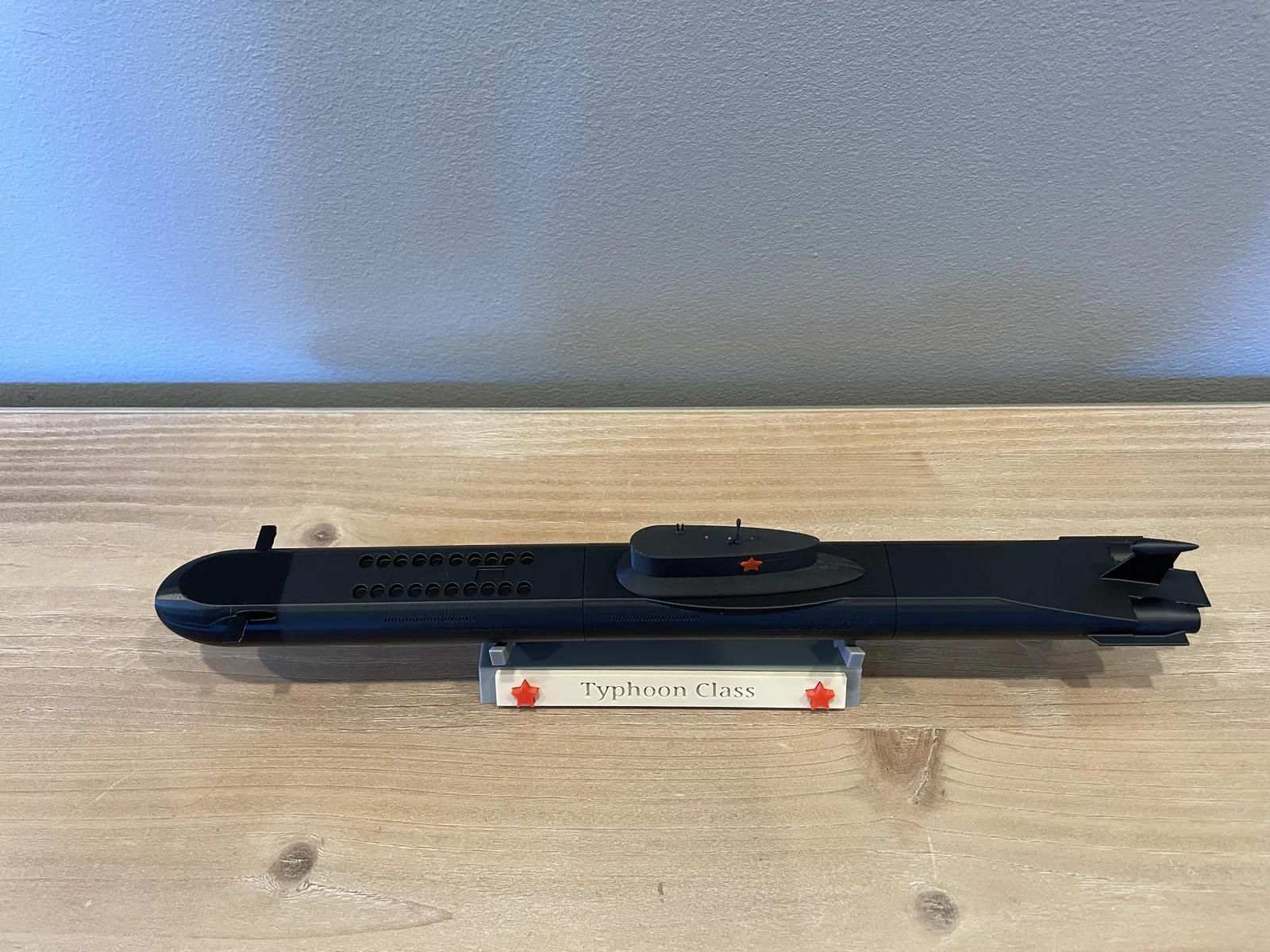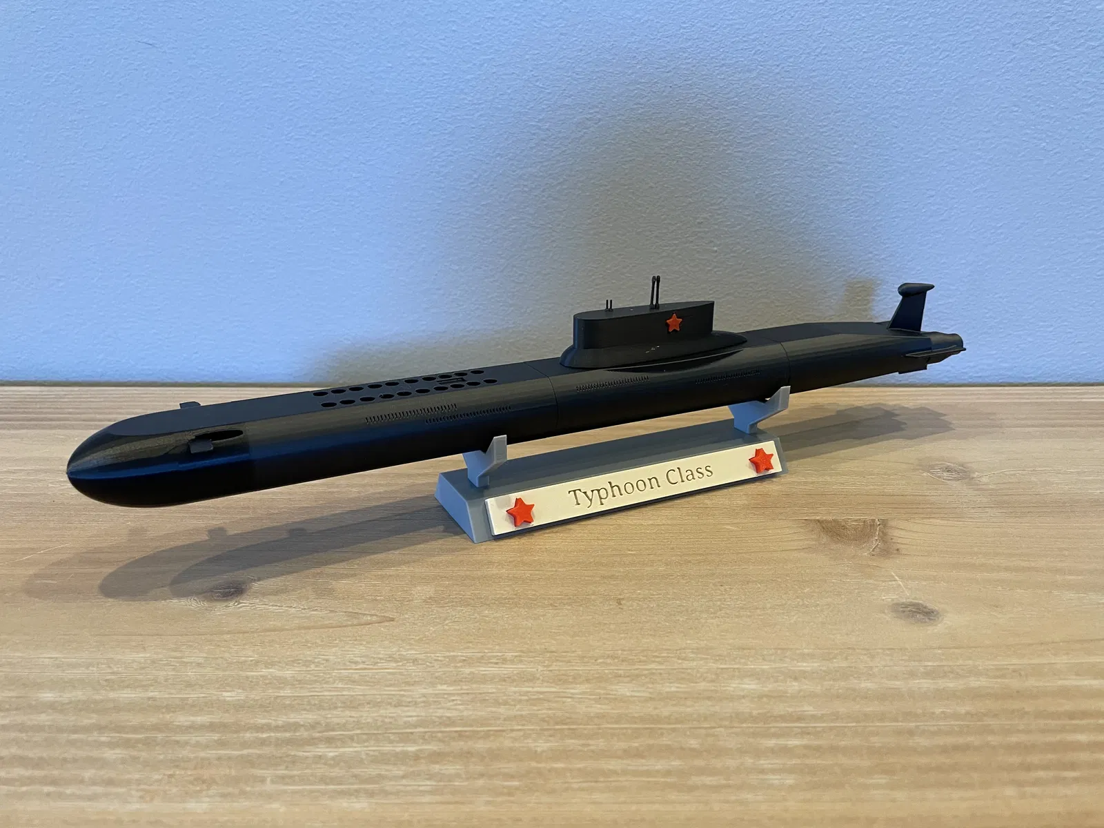 Mẫu 3D tàu ngầm Nga Typhoon-class (Red October) chi tiết, tối ưu để in 3D và lắp ráp dễ. Có 3 nameplate (NATO, Project 941 Akula, Red October); các phần đã test print để khớp chuẩn, cần keo và supports tùy chỉnh.