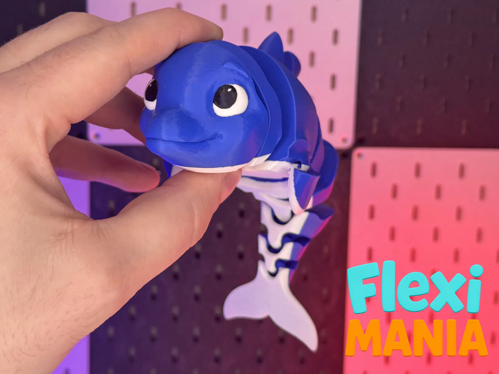 Một mẫu cá heo FlexiMania mượt mà, vui mắt, khớp nối sạch và dáng bơi tự nhiên.