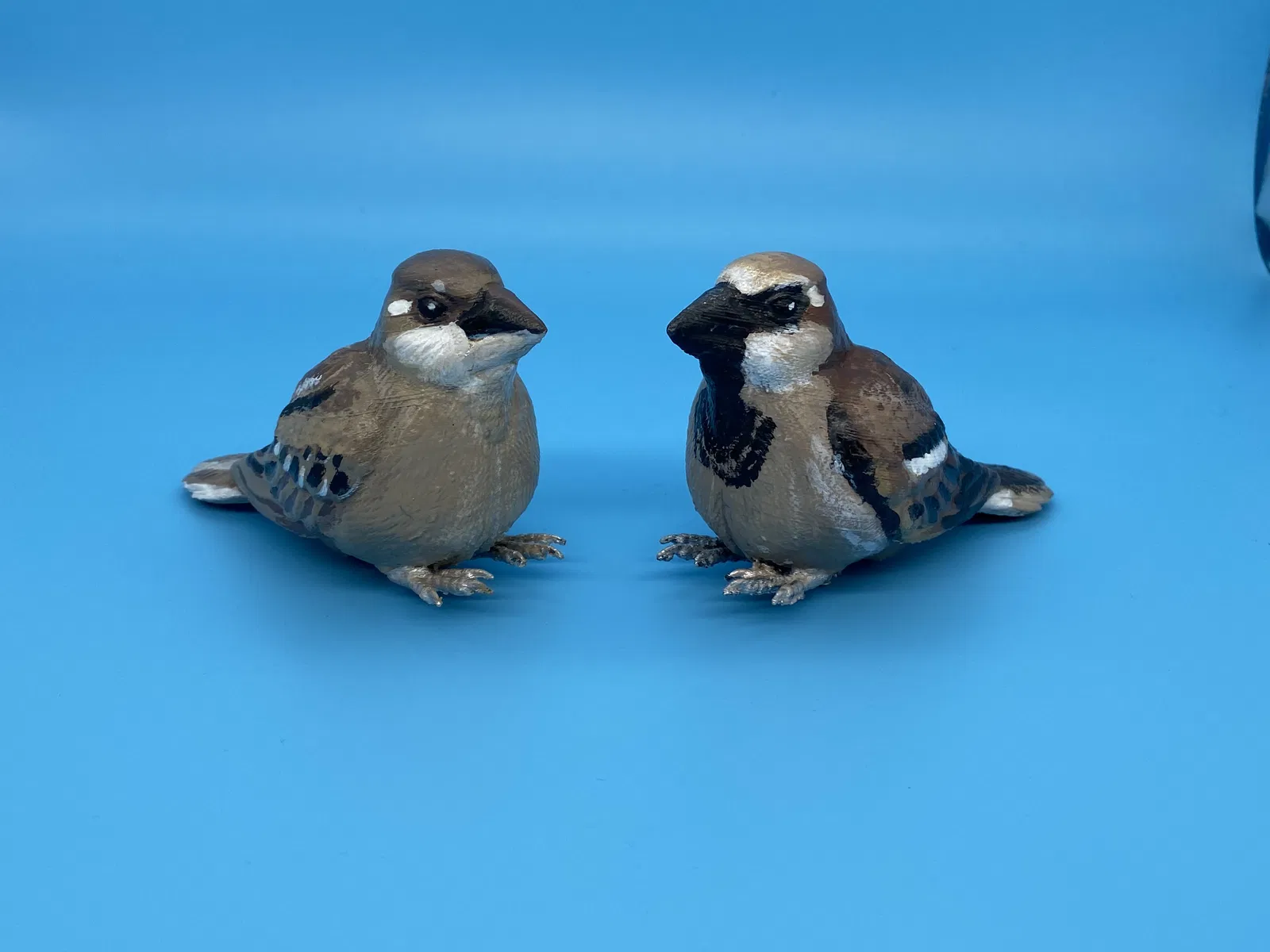 Tượng chim sẻ đang ngồi, mô phỏng chim sẻ nhà khi xù lông. Có thể dùng cho các loài chim tương tự như finch và chim hót. Được scale gần bằng kích thước chim sẻ thật, bạn có thể chỉnh lại tùy ý.
