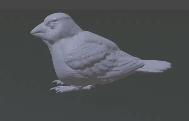 Tượng chim sẻ đang ngồi. Bản sculpt này dựa trên chim sẻ nhà (house sparrow) khi xù lông và ngồi yên. Model cũng có thể đại diện cho các loài chim có ngoại hình tương tự như finch và những loài chim hót khác. Mình scale nó cỡ gần bằng kích thước một con chim sẻ nhà thật, nhưng bạn cứ thoải mái chỉnh lại kích thước theo nhu cầu.