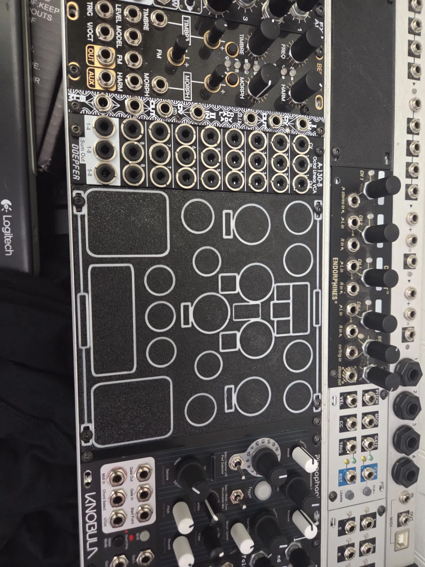 Tấm blank panel Eurorack 24 HP (cao 3U) theo chủ đề VHIKK X, dùng để chặn và chừa sẵn vị trí trong modular rack khi bạn đã preorder VHIKK X. Bố cục chỉ là mô phỏng trực quan sơ bộ.