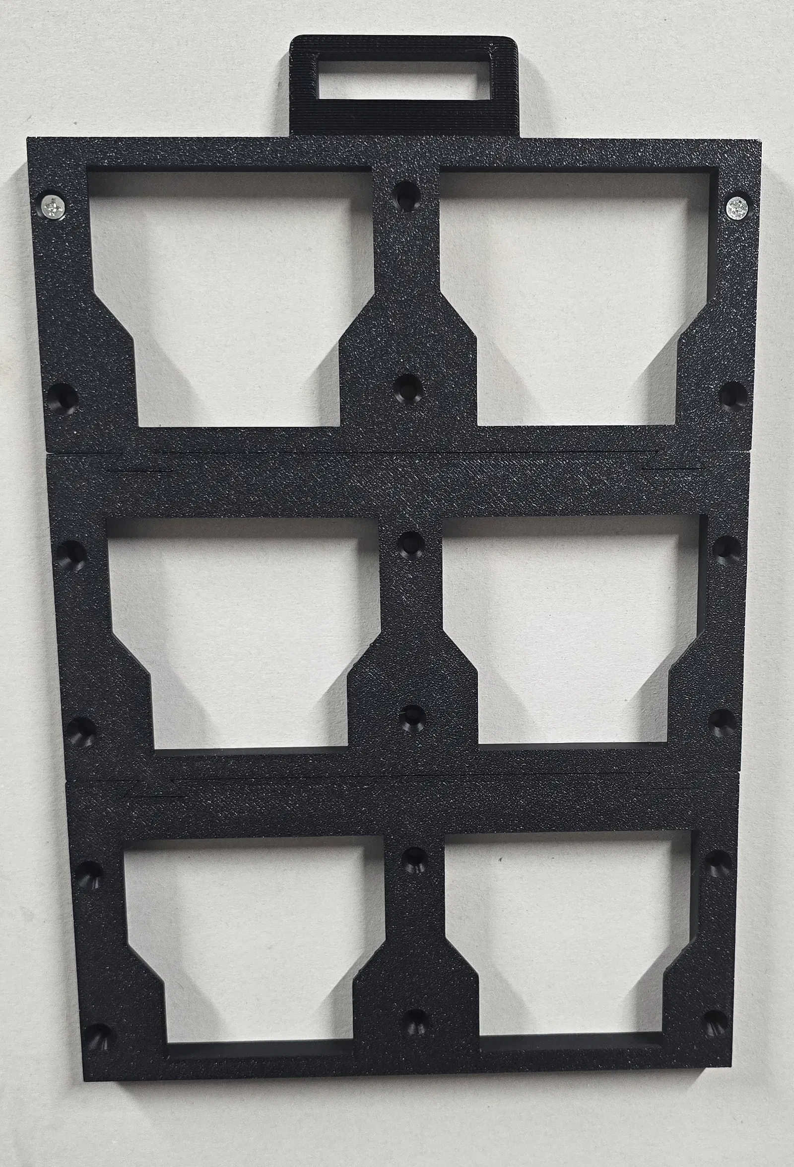 Tấm mounting plate cho hệ Milwaukee Packout. Mình chia ra 3 phần để có thể in được trên build plate 220x220. Có nhiều lỗ bắt vít để tăng độ ổn định. Có thể bắt lên tường hoặc lên kệ.