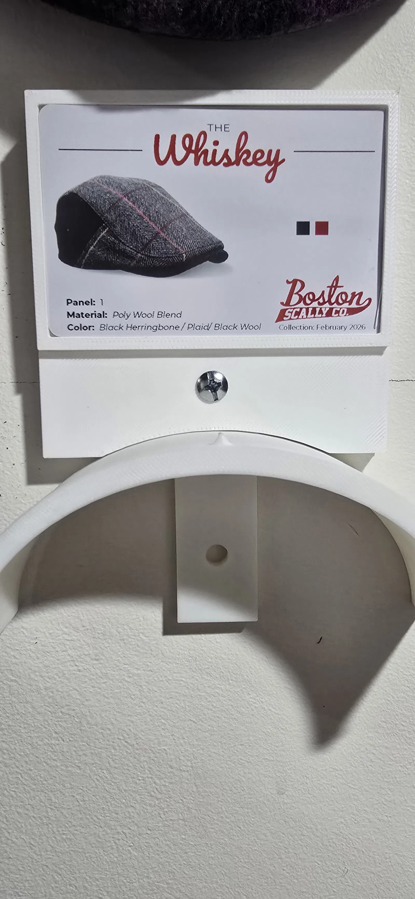 Mẫu giá treo mũ Boston Scally Cap holder, được chỉnh sửa bằng cách thêm 2 vị trí để bắt vít, giúp lắp đặt chắc chắn hơn trên tường hoặc bề mặt gỗ.