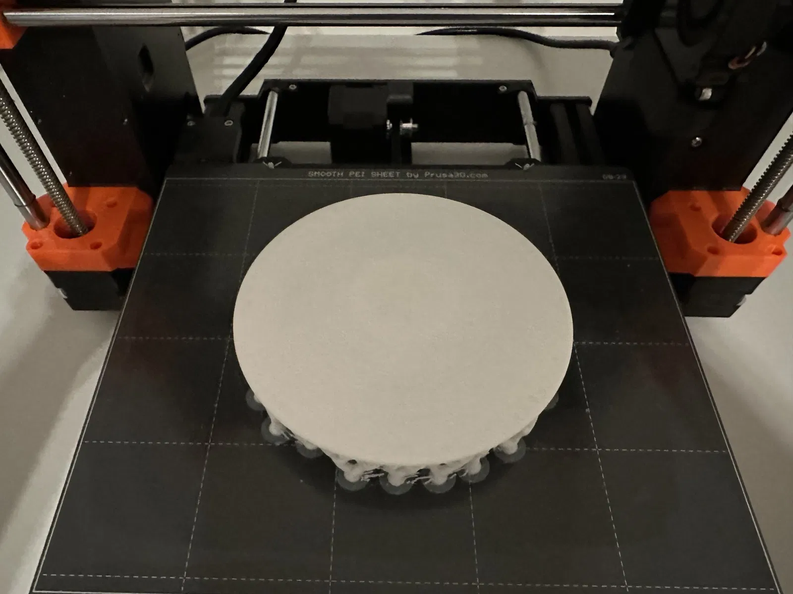 Thời gian in bằng PLA với nắp bên ngoài nằm trên bàn in khoảng 7 giờ, thời gian in bằng TPU với giá đỡ để có kết quả tối ưu khoảng 23 giờ.