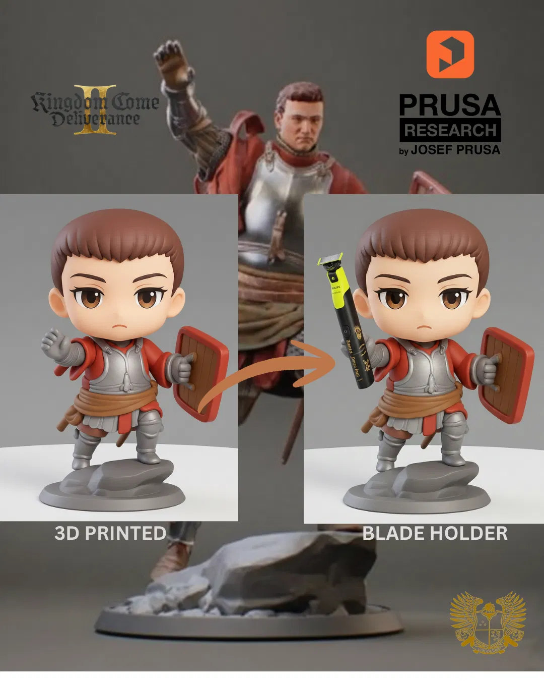 Giá đỡ dao cạo Philips OneBlade phong cách chibi anh hùng trung cổ, vừa tiện dụng vừa trang trí. In 3D dùng tốt với FDM, đế vững, hợp đặt phòng tắm hay bàn làm việc; có thể scale theo khoảng cách tay.