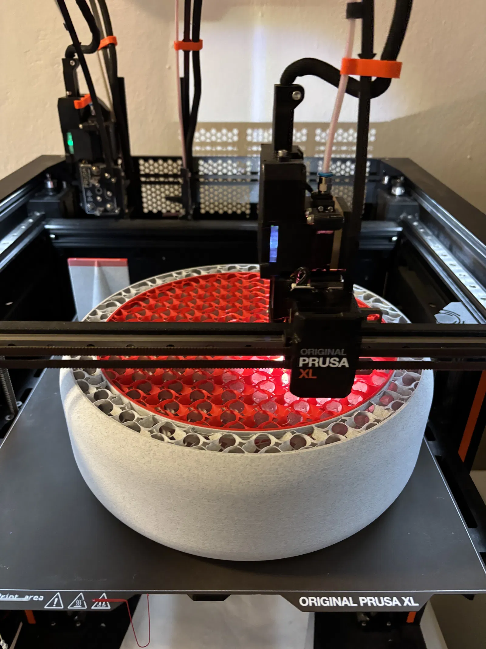 Model này được remix từ một viên curling stone loại mini. Nó được in trên Prusa XL (2T hoặc 5T) thành một khối liền. Trượt trên thảm rất ngon. Muốn nặng hơn thì bạn có thể pause print giữa chừng rồi đổ gạo sống vào bên trong. Tụi mình dùng Prusament Marble Grey cho phần đáy, còn phần trên dùng Lipstick Red/Pineapple Yellow. Phần tay cầm được gia cố bằng cách tăng extra perimeters.