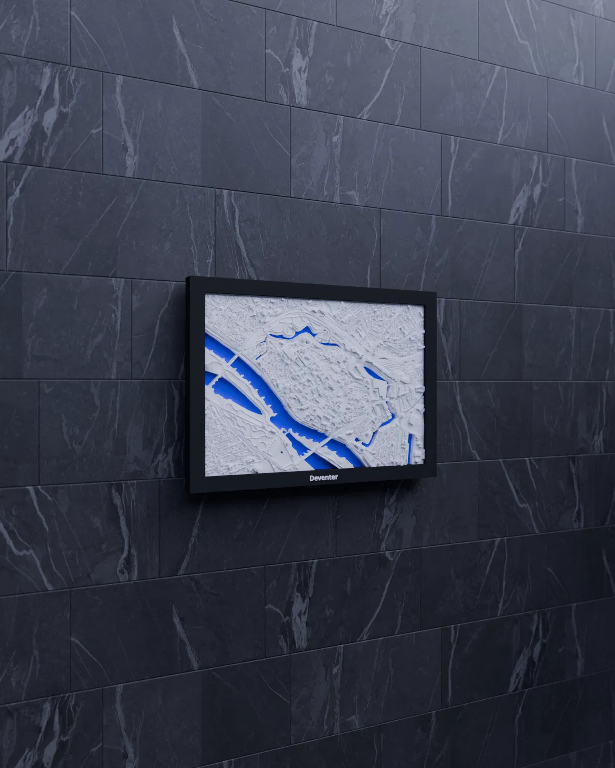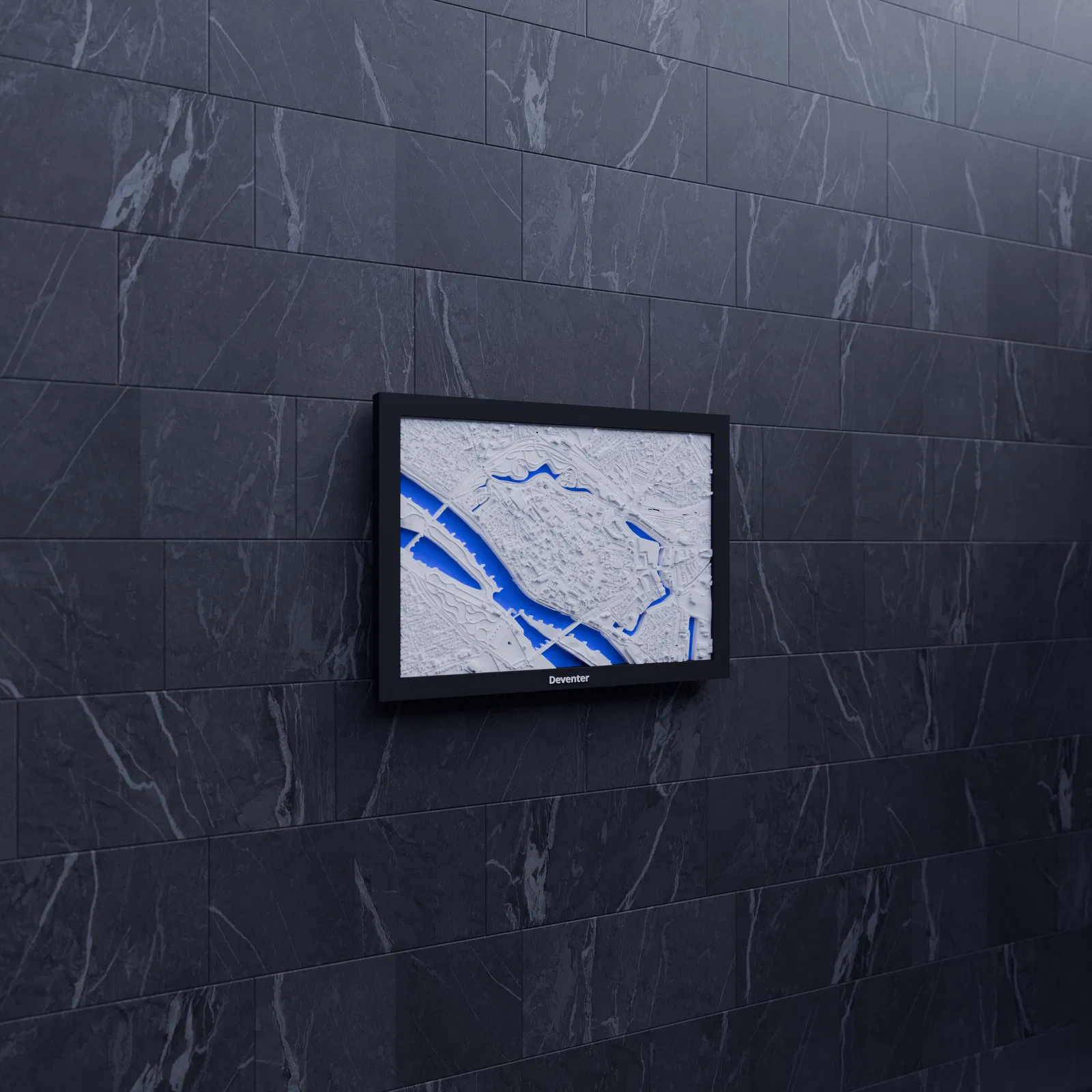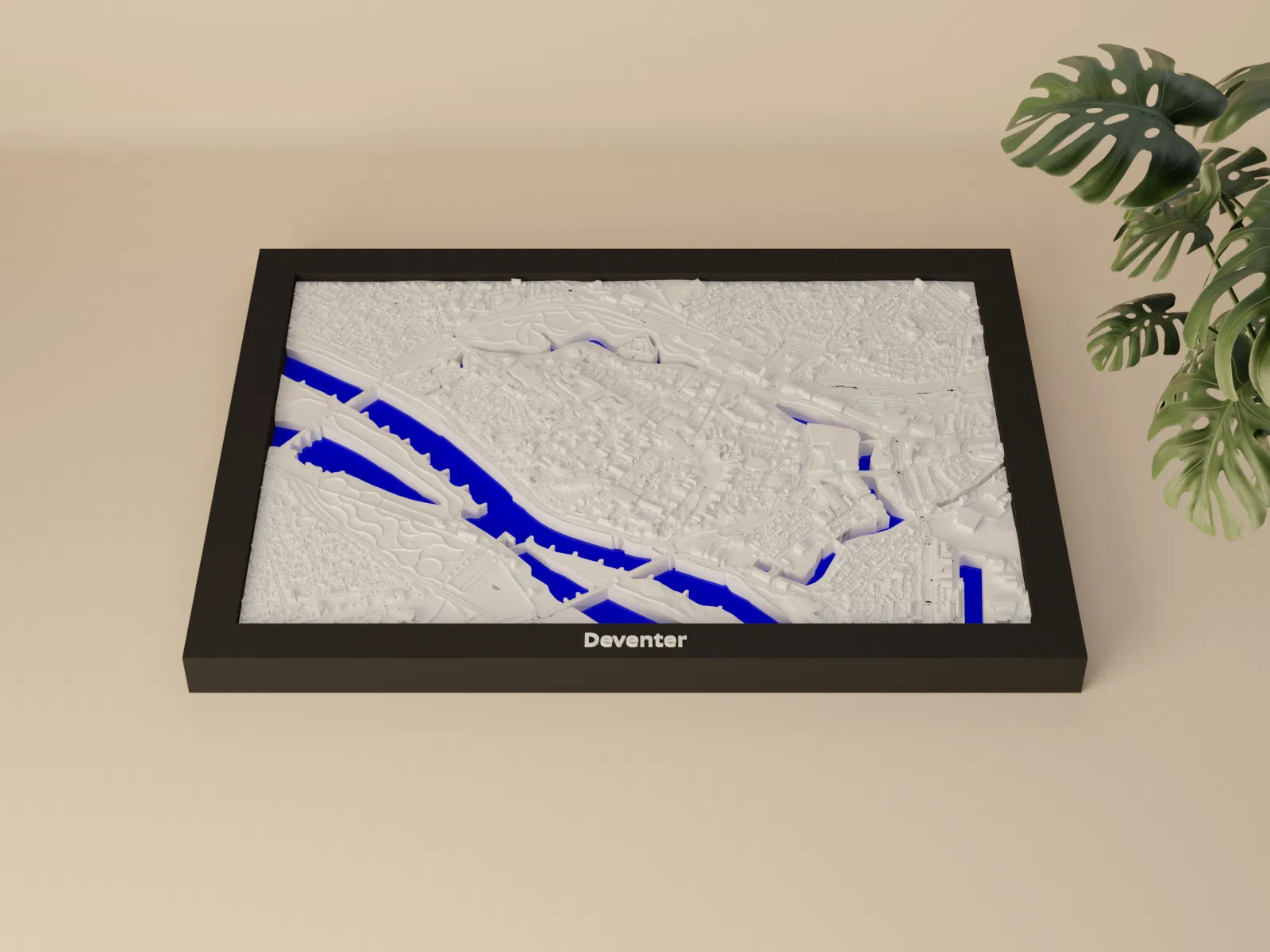 Mô hình thu nhỏ địa hình Deventer (Hà Lan) in 3D, dựng từ dữ liệu địa lý để thể hiện terrain chân thực. Kèm STL/3MF và nhiều mẫu frame, phù hợp trưng bày, học tập, quà tặng hoặc decor bàn làm việc.