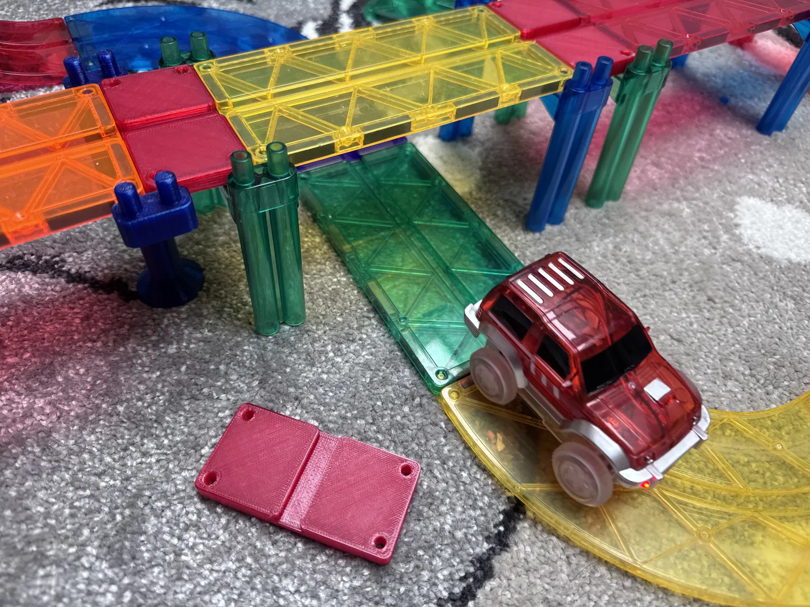 Đường ray nửa chiều dài cho các bộ magnetic track tiles, dùng để lắp ghép mở rộng đường chạy. Tương thích với MNTL và Picasso Tiles, phù hợp khi cần đoạn nối ngắn gọn, linh hoạt.