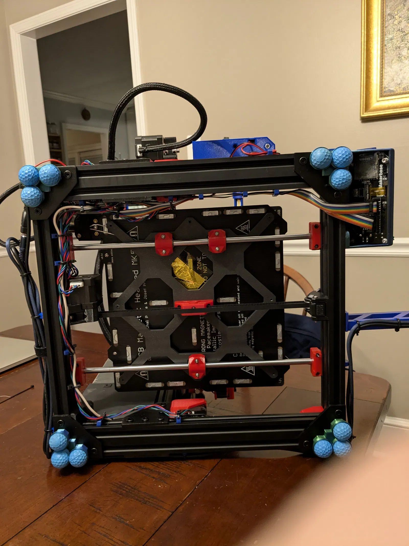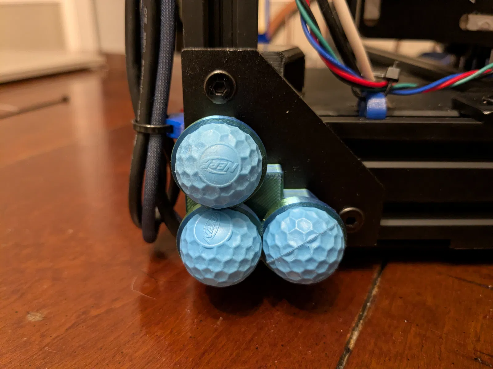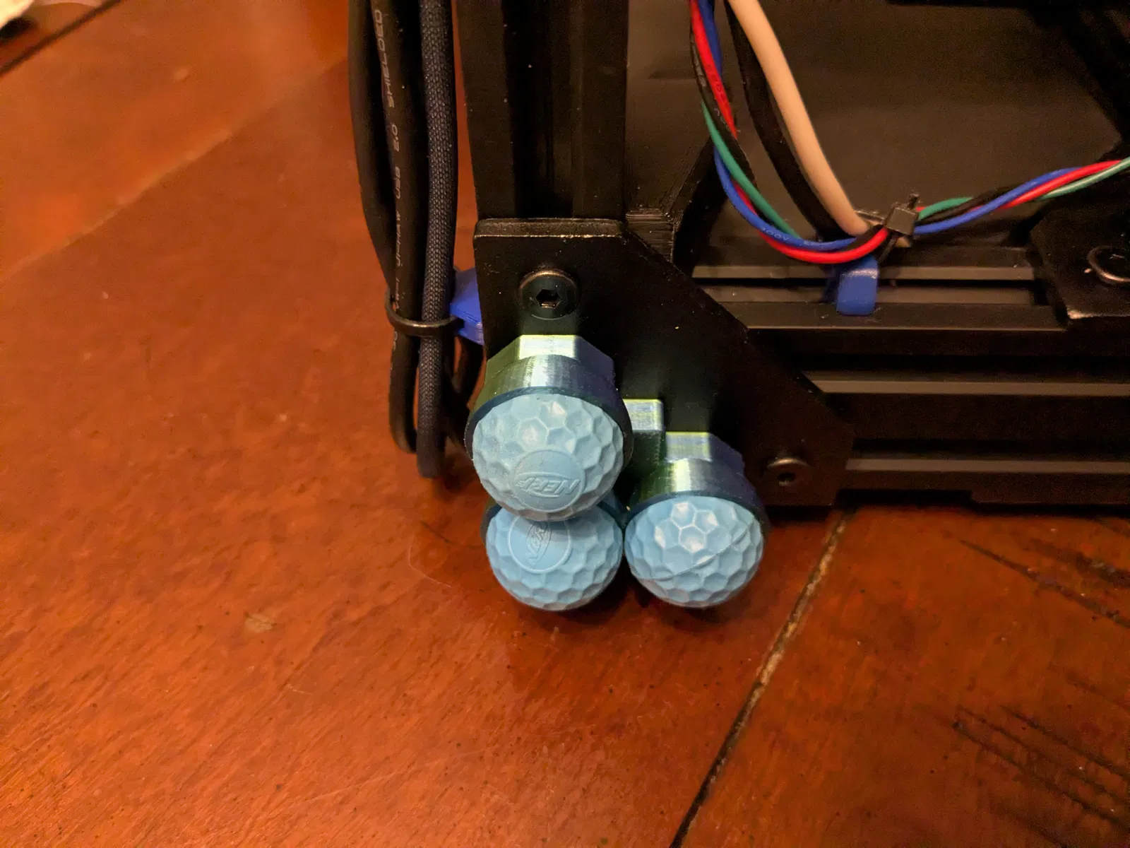 Bộ chân đế giảm rung dùng bóng Nerf Rival để hạn chế rung truyền xuống bề mặt (như tủ gỗ), giúp máy in 2020 frame/Prusa Bear chạy êm hơn. Cần 4 chân, 12 bóng Rival, t-nuts và bu lông M5.