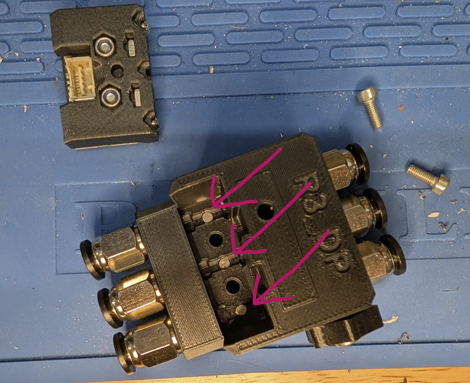 Lắp ráp: Mình dùng nam châm đường kính 3mm (bán theo dạng dài 6mm, nhưng thực tế gần 5mm hơn). Nam châm được nhét từ phía trên; nhớ kiểm tra cực sao cho hút viên bi thép. Lỗ nam châm được thiết kế hơi nhỏ hơn chút, nên nam châm sẽ tự giữ chặt tại chỗ.