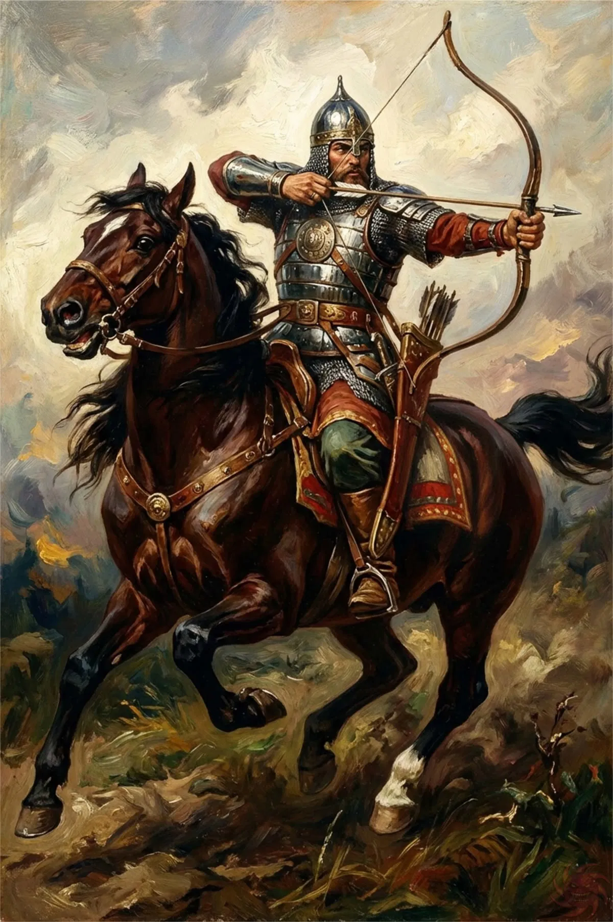 Kỵ sĩ Nga cưỡi ngựa với cung