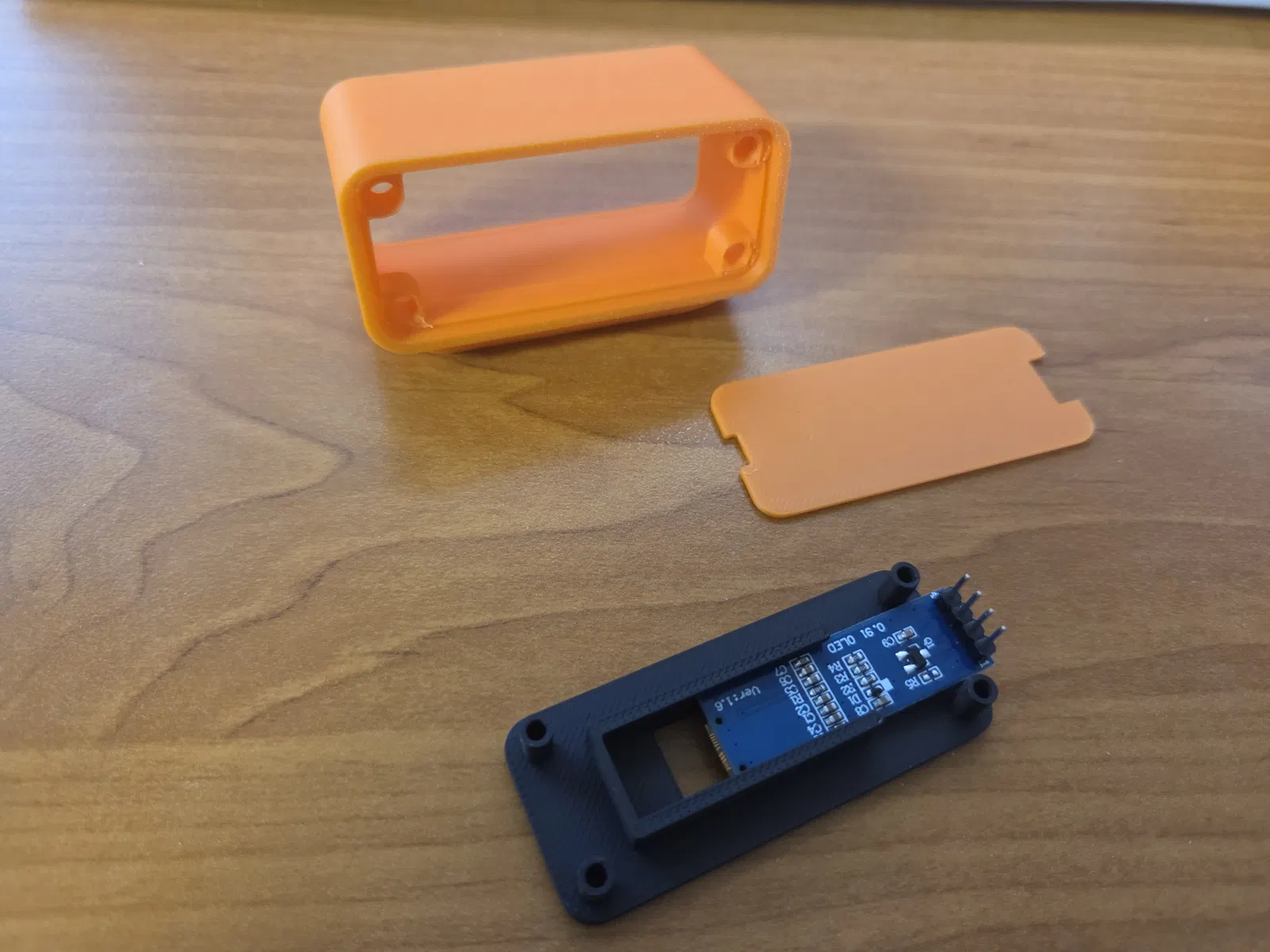 Vỏ hộp cho OLED Display 0,91" 128x32 giao tiếp I2C, lắp ráp đơn giản. In với tree supports từ build plate, không cần keo hay ốc. Khuyến nghị in PLA, layer 0,2 để ra đẹp và dễ lắp.