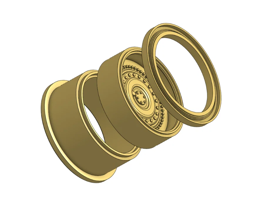 Phần rim được làm thành ba phần để in dễ hơn mà không cần support.