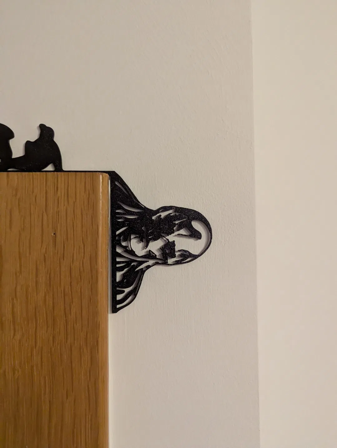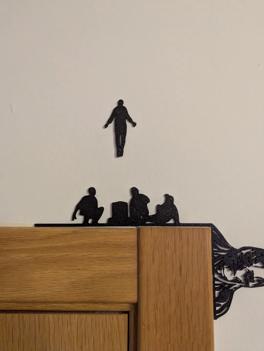 Mẫu wall art góc tường chủ đề Stranger Things với Max ở nghĩa trang và cánh cửa Vecna. Thiết kế đơn giản, dễ in và trang trí, có thể gắn lên tường nhanh bằng blue tack.