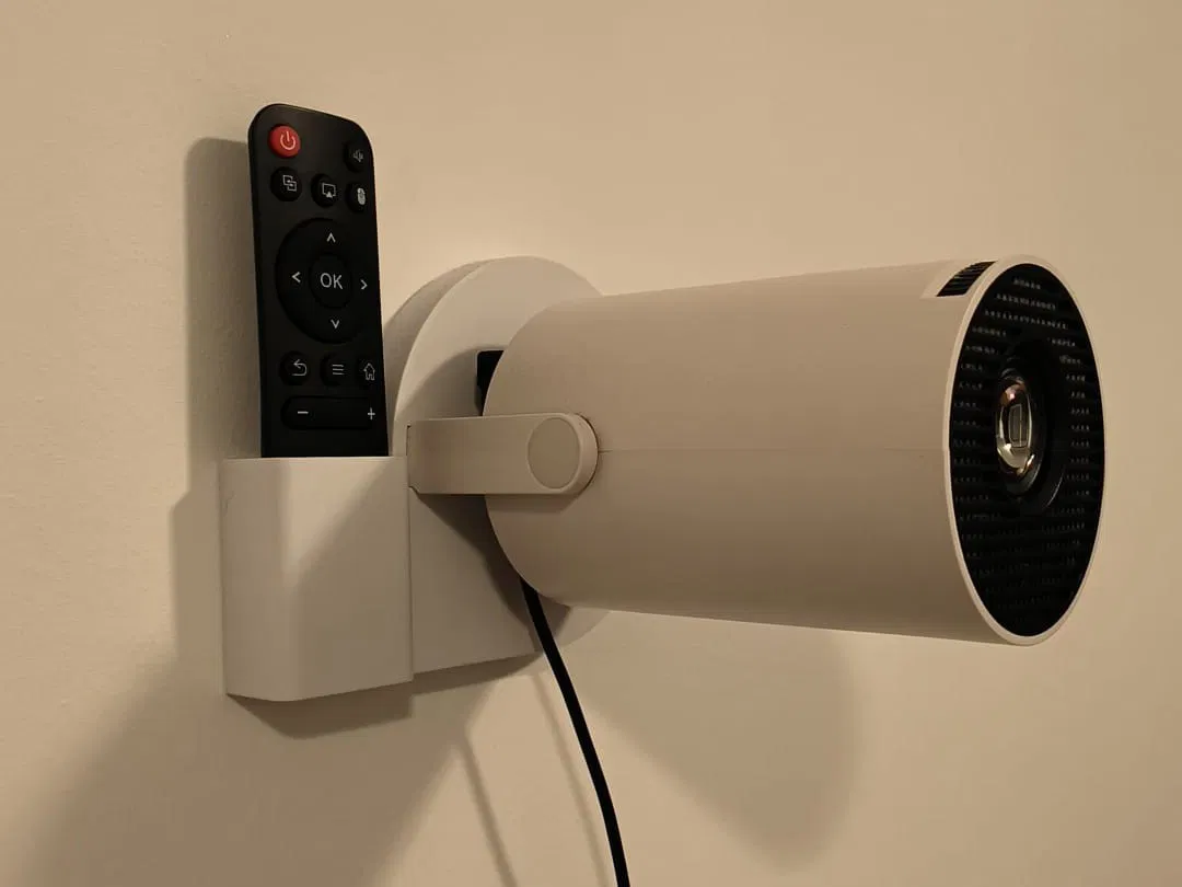 Giá treo tường cho máy chiếu Magcubic HY300, bắt bằng 1 con vít trung tâm để dễ canh chỉnh và cân bằng trước khi cố định. Có 2 file riêng cho 2 phiên bản máy: đế mỏng (không ren tripod) và đế rộng (có ren tripod).