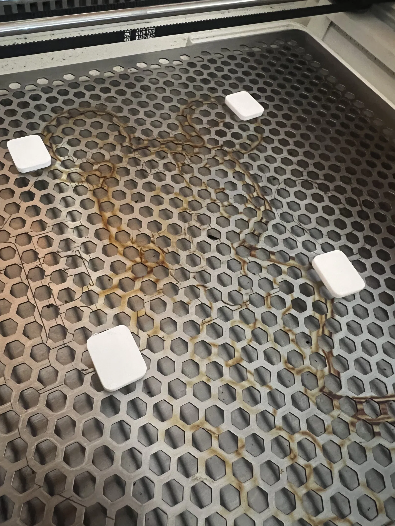 Đặt các pin lên honeycomb bed để ghì giữ các tấm sheet, gỗ, acrylic hoặc vật liệu khác. Rất hợp cho những miếng nhỏ hoặc mềm cần được ổn định trong lúc laser cutting.