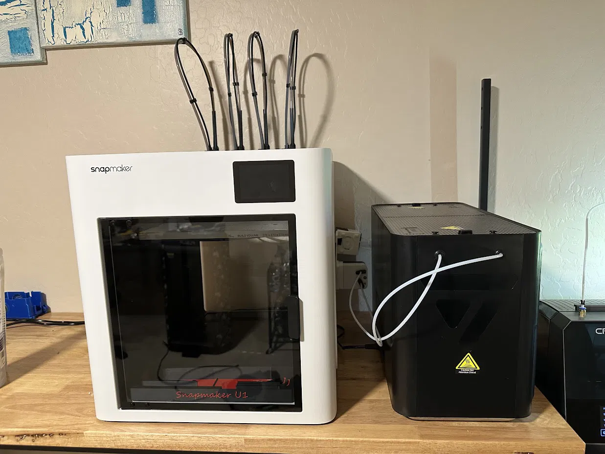 Để dời các automatic feeder về một phía của máy, mình đã remix một model của Simon_Zhi (https://makerworld.com/en/models/2044385-snapmaker-u1-automatic-feeder-angle-adjustment-bra#profileId-2467011) và hiện đang chờ được cho phép để đăng. Mình có đính kèm hình ở đây phòng khi bạn muốn tự làm một món tương tự. Nếu được cấp quyền, mình sẽ thêm link ở đây. Mình cũng cho dây của cả hai automatic feeder đi qua đúng cái lỗ zin ở bên phải. Với board RFID đặt ở vị trí này, dây cáp vẫn dư chiều dài để tới được vị trí feeder mới nằm phía trên feeder bên phải nguyên bản.