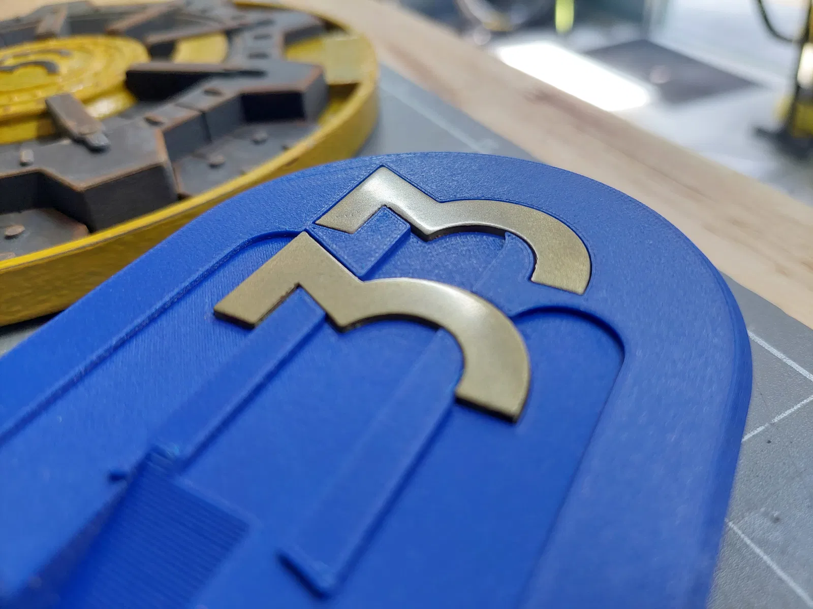 Huy hiệu “33” được in bằng Protopasta brass-fill PLA, sau đó đánh bóng kỹ bằng bộ polishing sheets của họ.