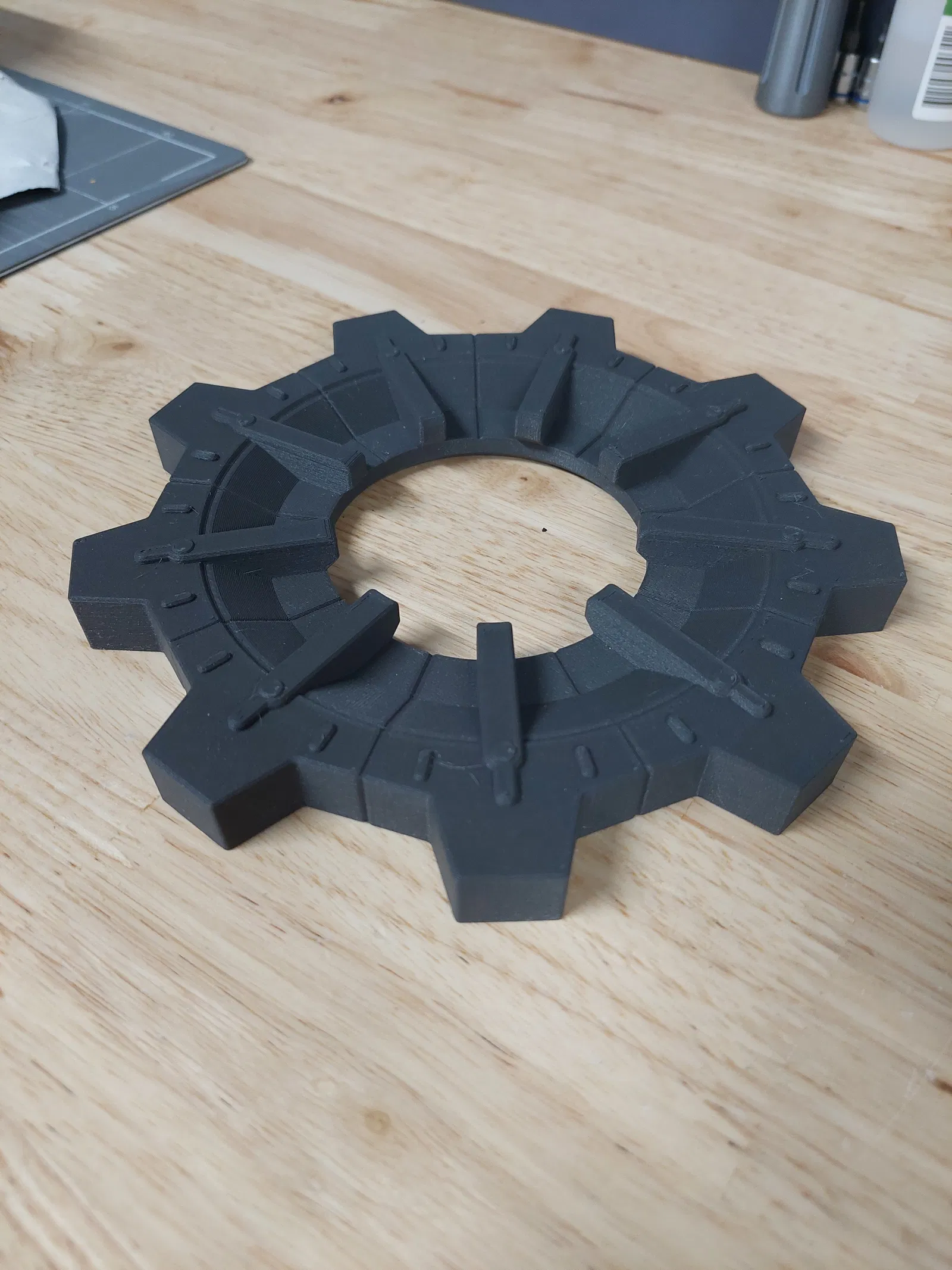 Mẫu kệ trưng bày lấy cảm hứng từ cánh cửa vault giữa Vault 33 và 32 trong series Amazon Prime, có nhiều easter egg. Kích thước 230×100×215mm, tách chi tiết để dễ in nhiều vật liệu và dán keo lắp ráp.