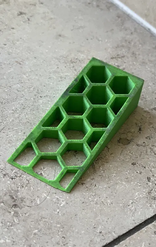 Mẫu Türstopper (chặn cửa) với họa tiết lục giác (hexagon). Mẹo nhỏ: nên in màu đen để các vết in/đường hằn như trên ảnh sẽ khó nhìn thấy hơn.