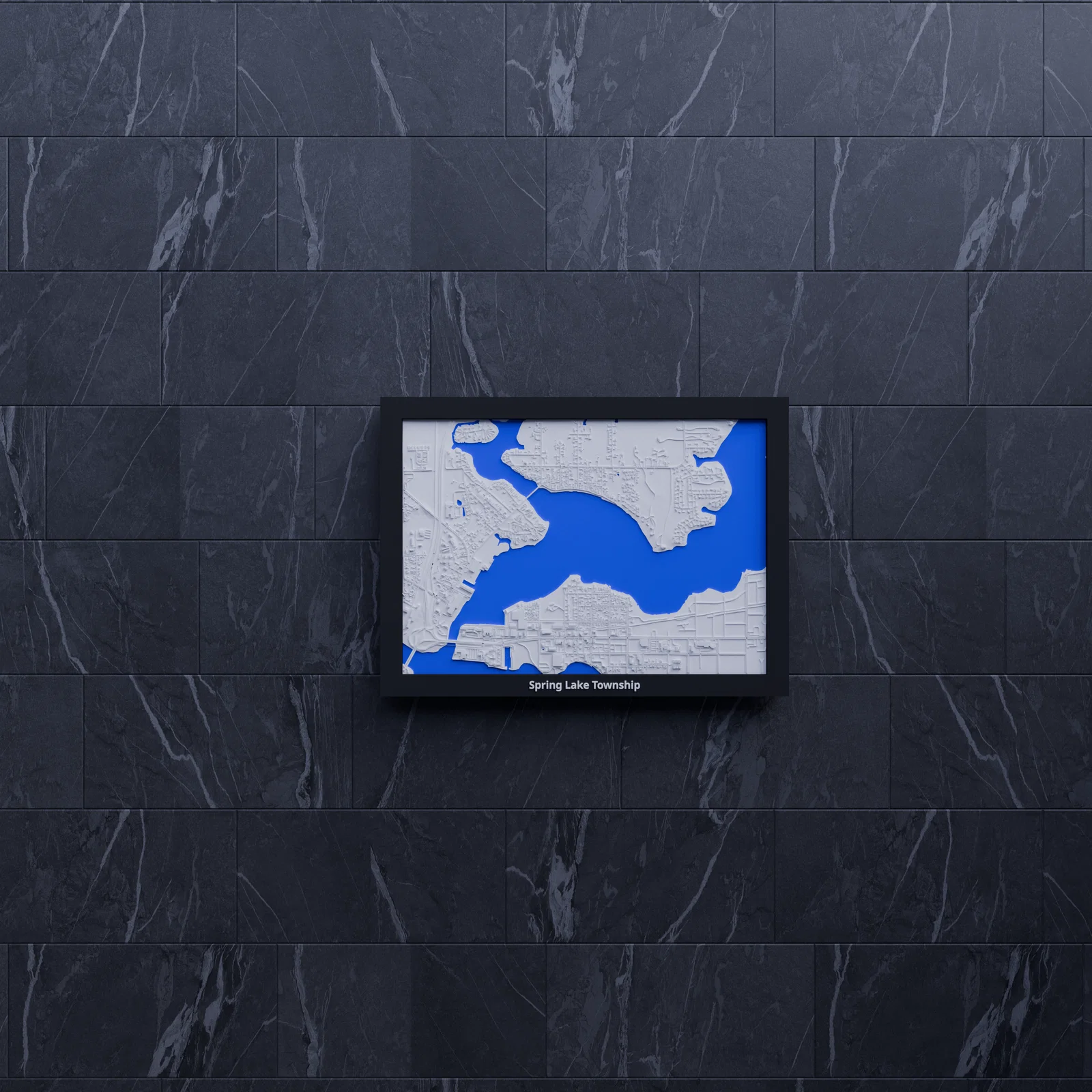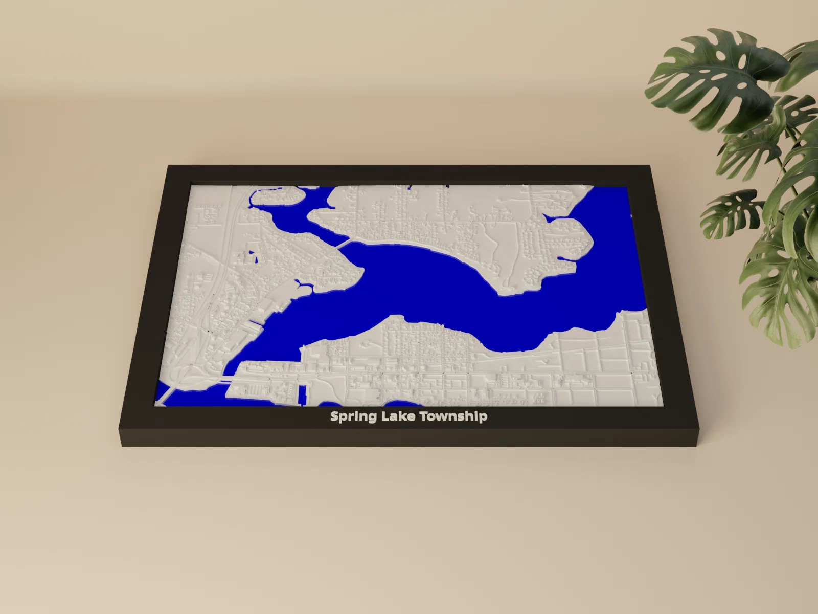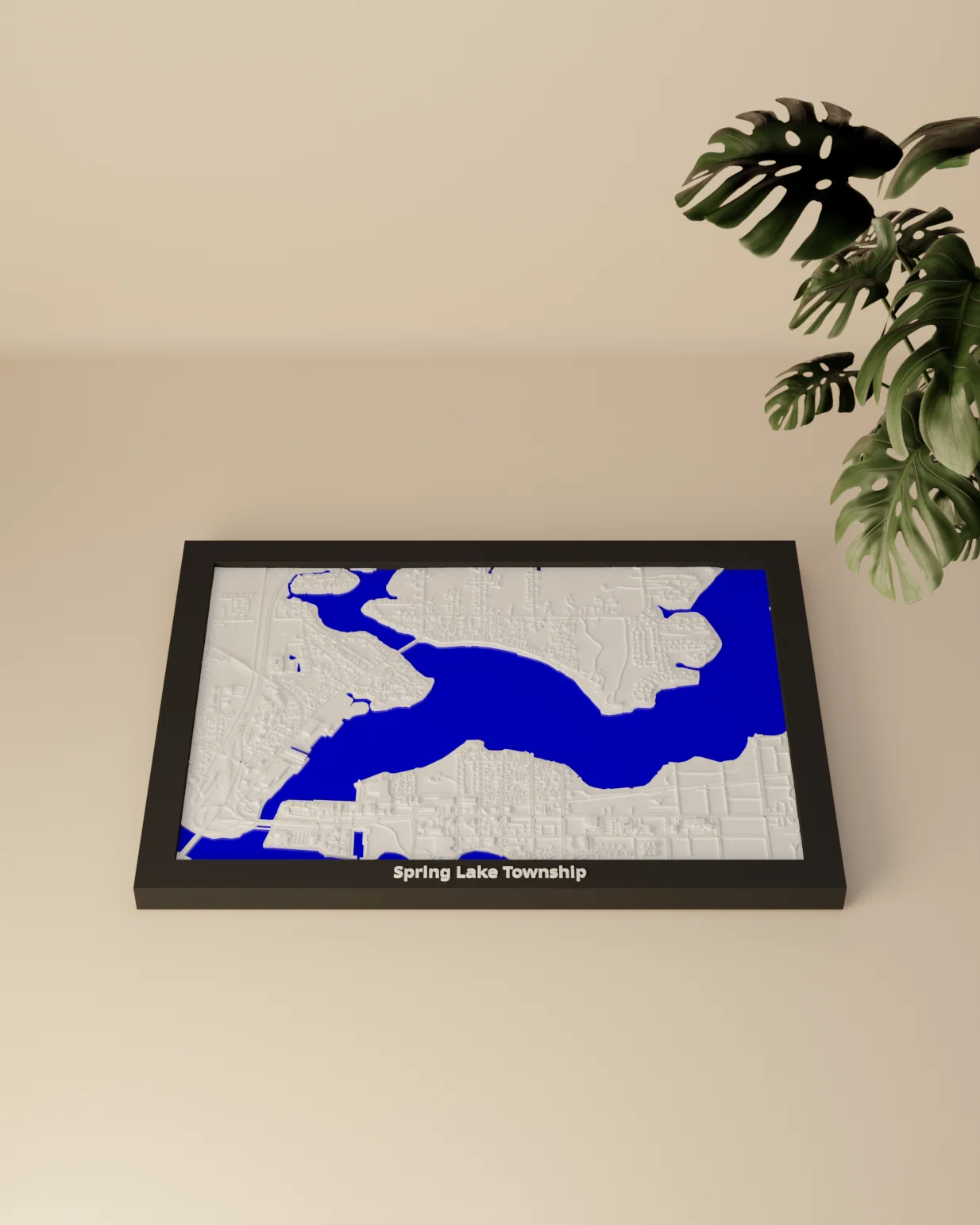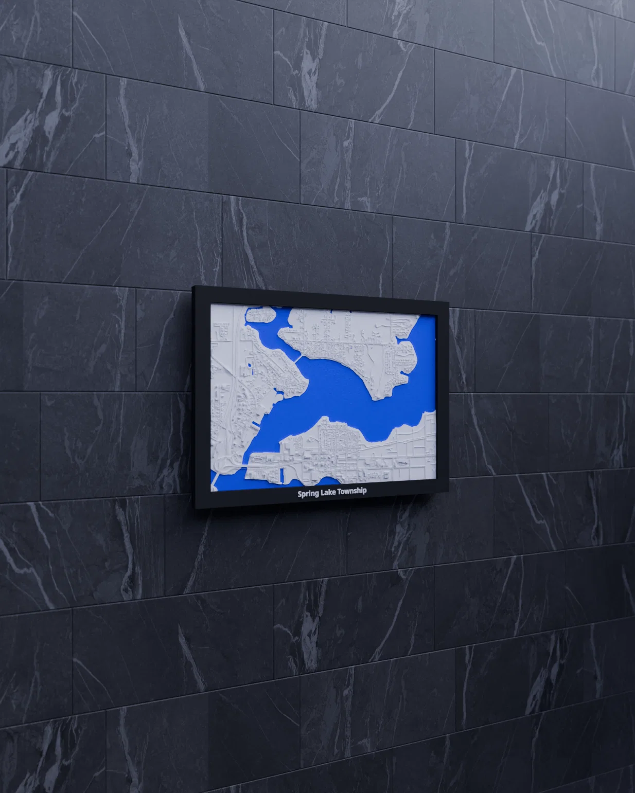 Mô hình địa hình thu nhỏ Spring Lake Township (Hoa Kỳ) dựng từ dữ liệu địa lý thực, tỷ lệ ~16526:1, kích thước in 170.5 × 119.5 mm. Có sẵn STL/3MF, nhiều frame kèm lỗ treo, hợp trưng bày hoặc làm quà.