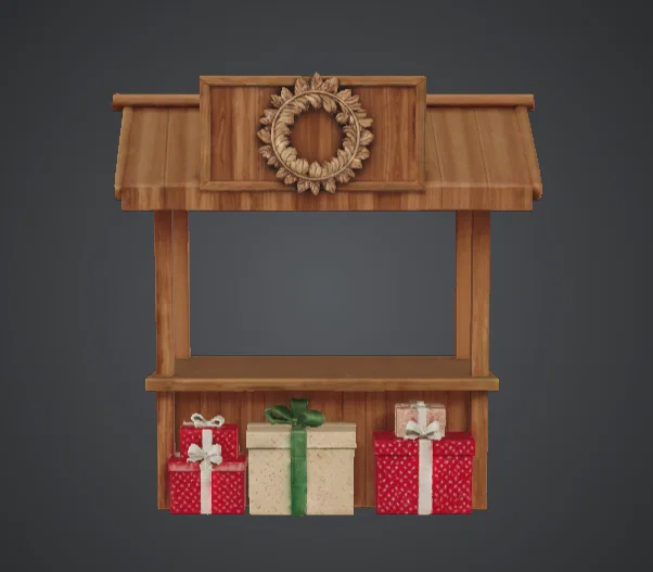 Mang trọn sự ấm áp và nét duyên của mùa lễ hội với mẫu Christmas Market Stall được chế tác đẹp mắt này. Thiết kế theo phong cách quầy gỗ cổ điển, gian hàng lễ hội có mái dốc, cột đỡ chắc chắn và chi tiết vòng nguyệt quế trang trí, làm nổi bật không khí mùa Giáng Sinh.