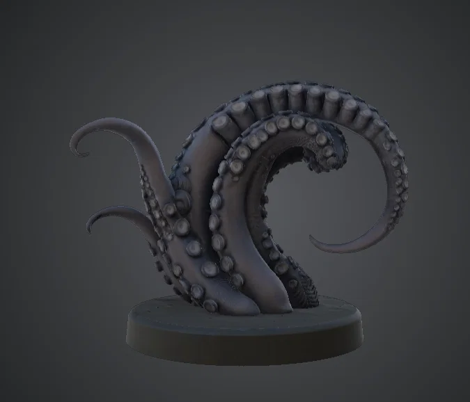 Mẫu Giant Kraken Tentacle lấy cảm hứng từ quái vật biển huyền thoại, dáng xoắn ốc kịch tính, giác bám và texture rõ nét. Đế tròn chắc chắn, hợp làm centerpiece cho phong cách hàng hải hoặc dark fantasy.
