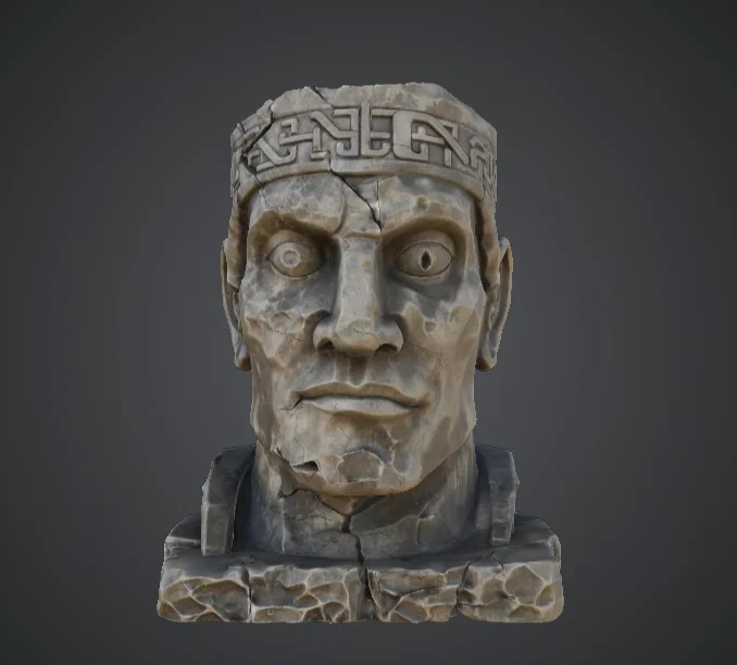 Mẫu Ancient Stone Guardian Bust tái hiện đầu tượng vệ thần đá cổ phong hoá với bề mặt nứt vỡ, hoạ tiết hình học và cạnh sứt mẻ. Rất hợp để sơn giả đá, phủ rêu hoặc patina cũ, tăng chiều sâu và không khí cổ xưa cho bối cảnh.