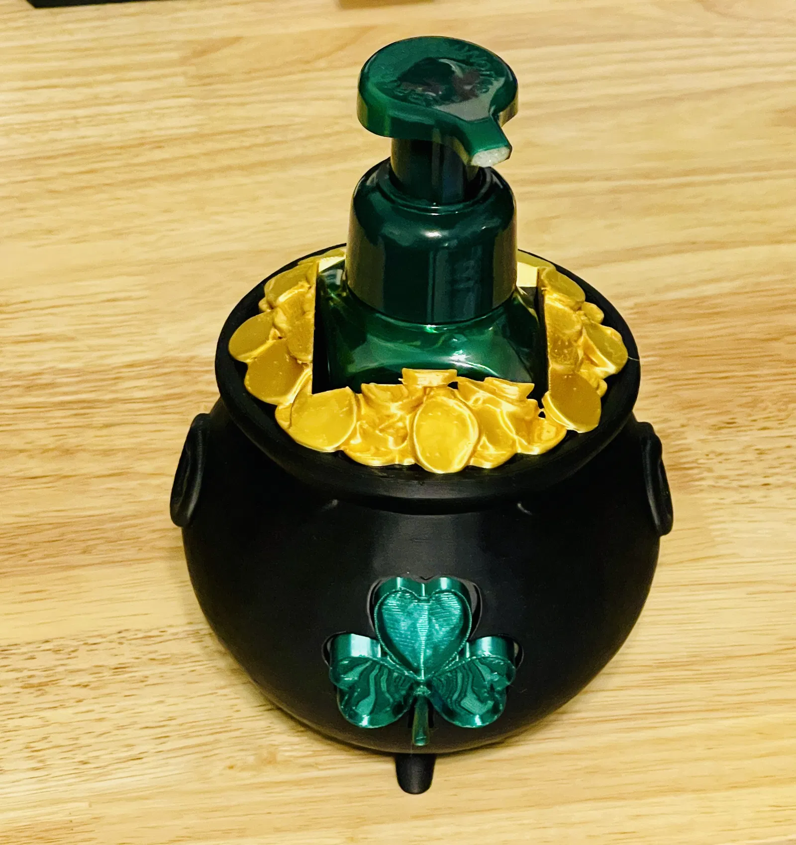 Mẫu giá đỡ soap dispenser chủ đề Leprechaun Pot of Gold cho St. Patrick’s Day. In dễ, không cần AMS, vừa chai Bath & Body Works và có dư chỗ để thử nhiều loại dispenser khác. Double sided nên nhìn đẹp ở mọi góc.