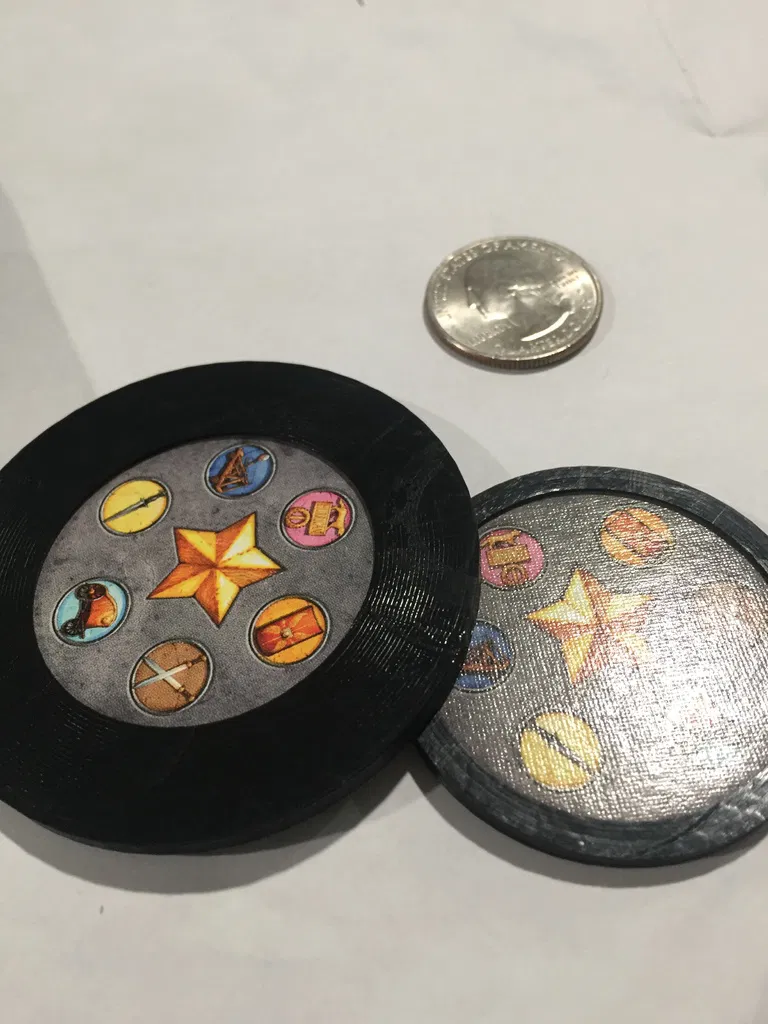 Dùng được cho token PnP nữa. Cắt artwork của bạn và in một miếng đáy đặc với token_height = 0. File .scad đáy đặc có trong bản remix của mình (Burgundy capsules). Tăng fragment count để cylinder tròn lại (hoặc theo kiểu bạn thích).