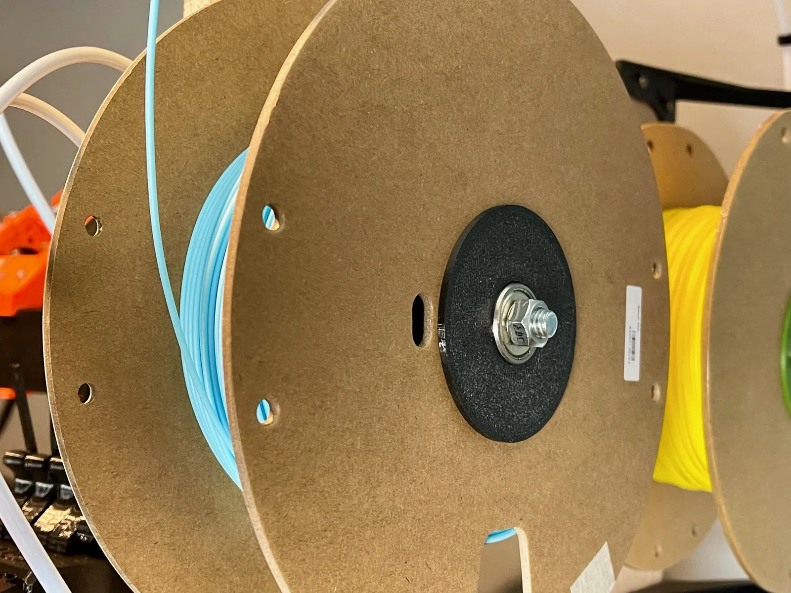 spoolhub đã in, ép bearing vào (mặt bearing hướng về phía đầu bu-lông)