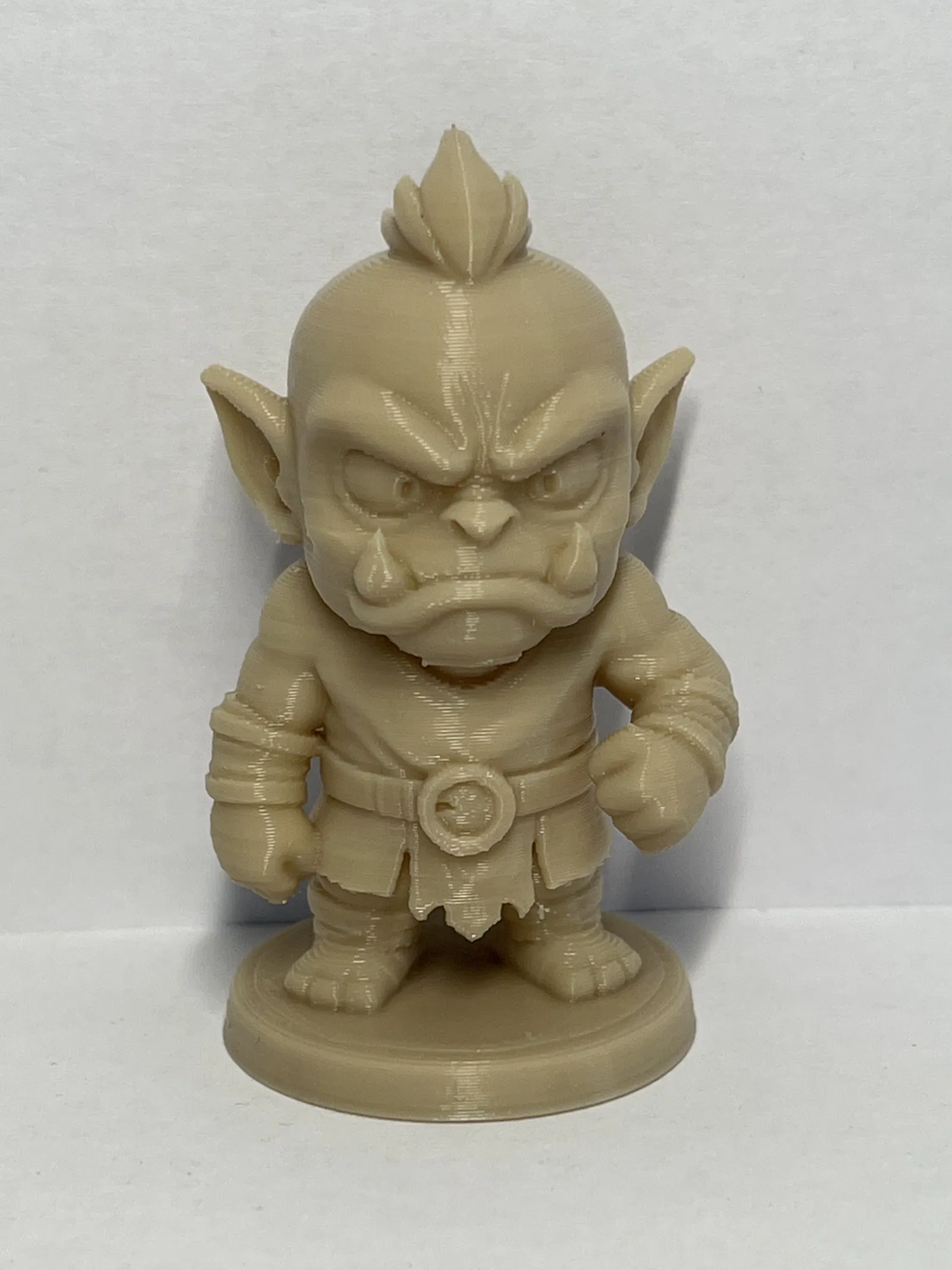 Mẫu figurine 3D Chibi Orc do AI tạo, phù hợp in trang trí ở kích thước nhỏ. Tác giả in trên máy hơi cũ và tối ưu tỉ lệ chất lượng/thời gian; ảnh chỉ để minh hoạ, chứng minh model in được.