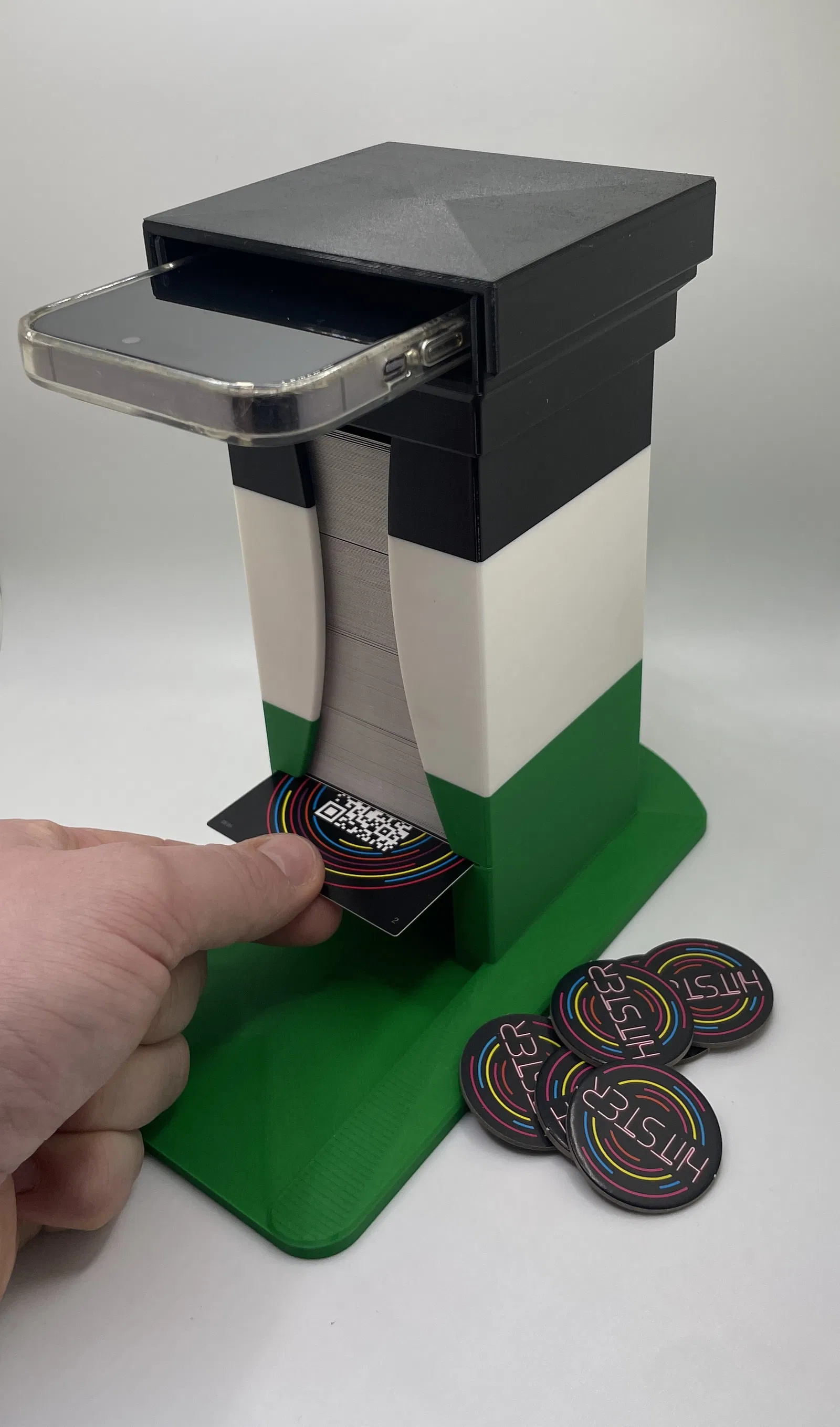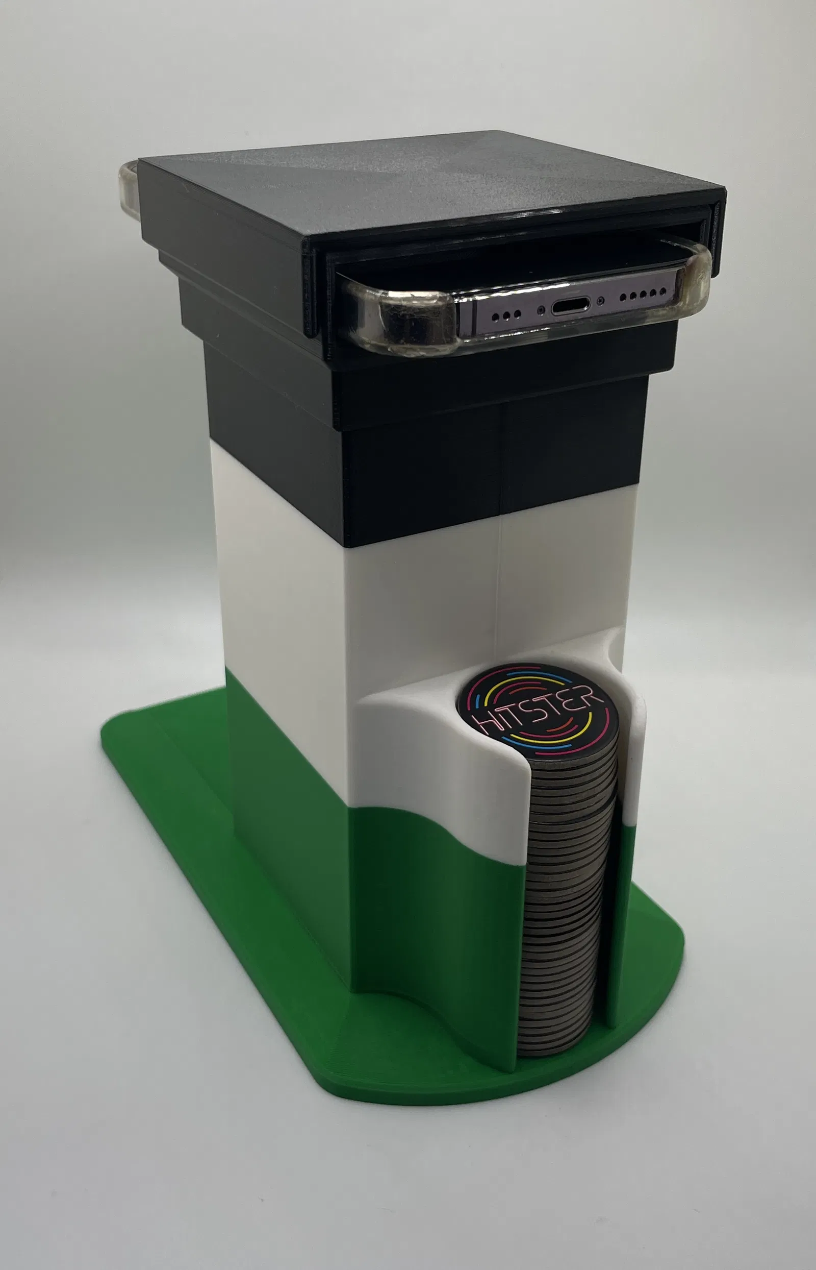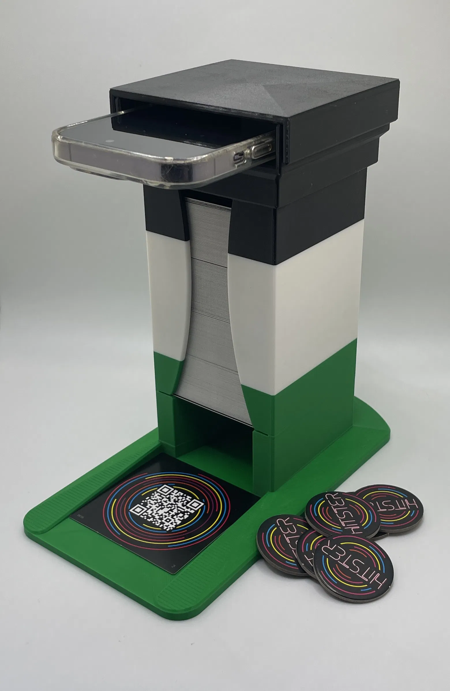 Phụ kiện dạng tháp (tower) cho game Hitster và Hitster Celebration, hỗ trợ giữ thẻ/coin và gắn điện thoại. Có nhiều phiên bản (basic, MAX, modular) với cập nhật coinholder thay đổi và giá đỡ lớn.