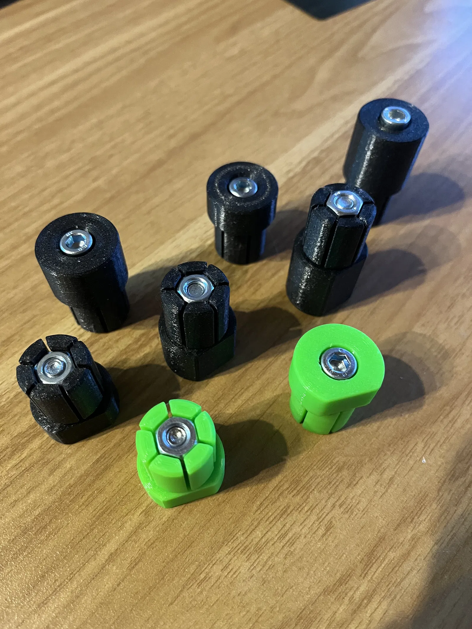 Bộ Benchdog 20mm cao 12/18/25mm (có bản tròn và bản cạnh phẳng), tích hợp vít M6 để cố định trong lỗ 20mm. Gợi ý in: layer 0,2mm, 4 perimeter, infill 20%, vật liệu PETG.