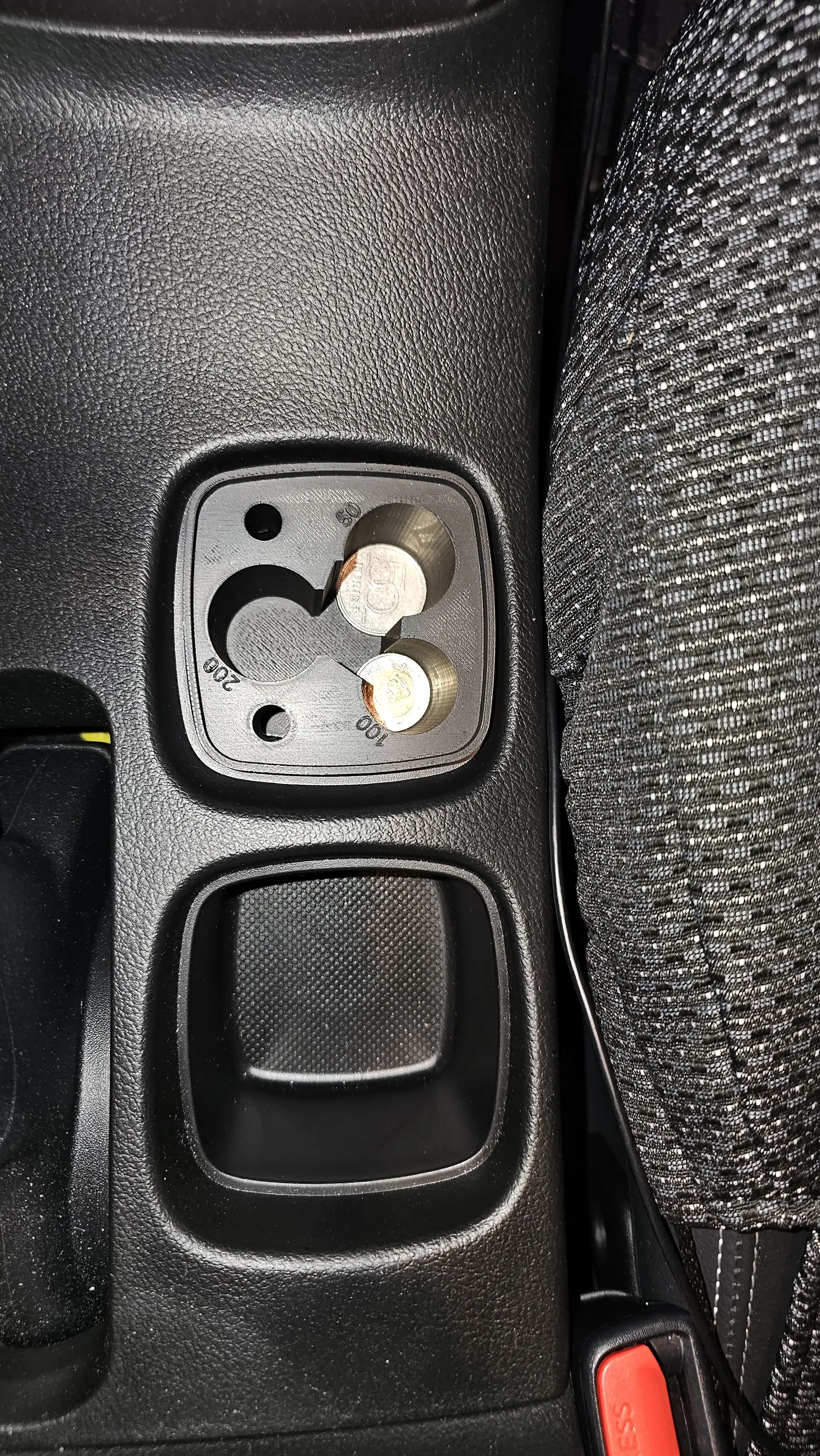 Khay đựng tiền xu gắn vừa cupholder cho Suzuki Vitara / S Cross, thiết kế theo model gốc của @gillis. Tối ưu cho đồng HUF nhưng có thể dùng cho nhiều loại xu khác, kèm 2 lỗ cắm bút hoặc chai xịt thơm.