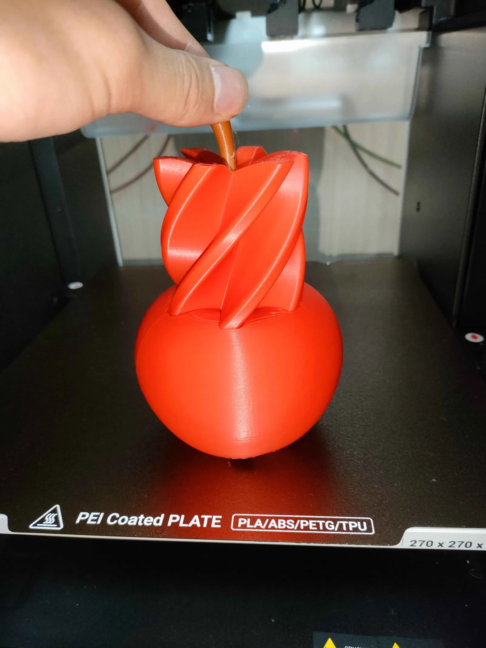 Mẫu táo trang trí với lớp vỏ xoắn, xoay là lộ phần lõi bên trong. Hiệu ứng spiral độc đáo, cảm giác vừa mechanical vừa organic. Không cần support, nên in dựng đứng, khuyến nghị PLA.