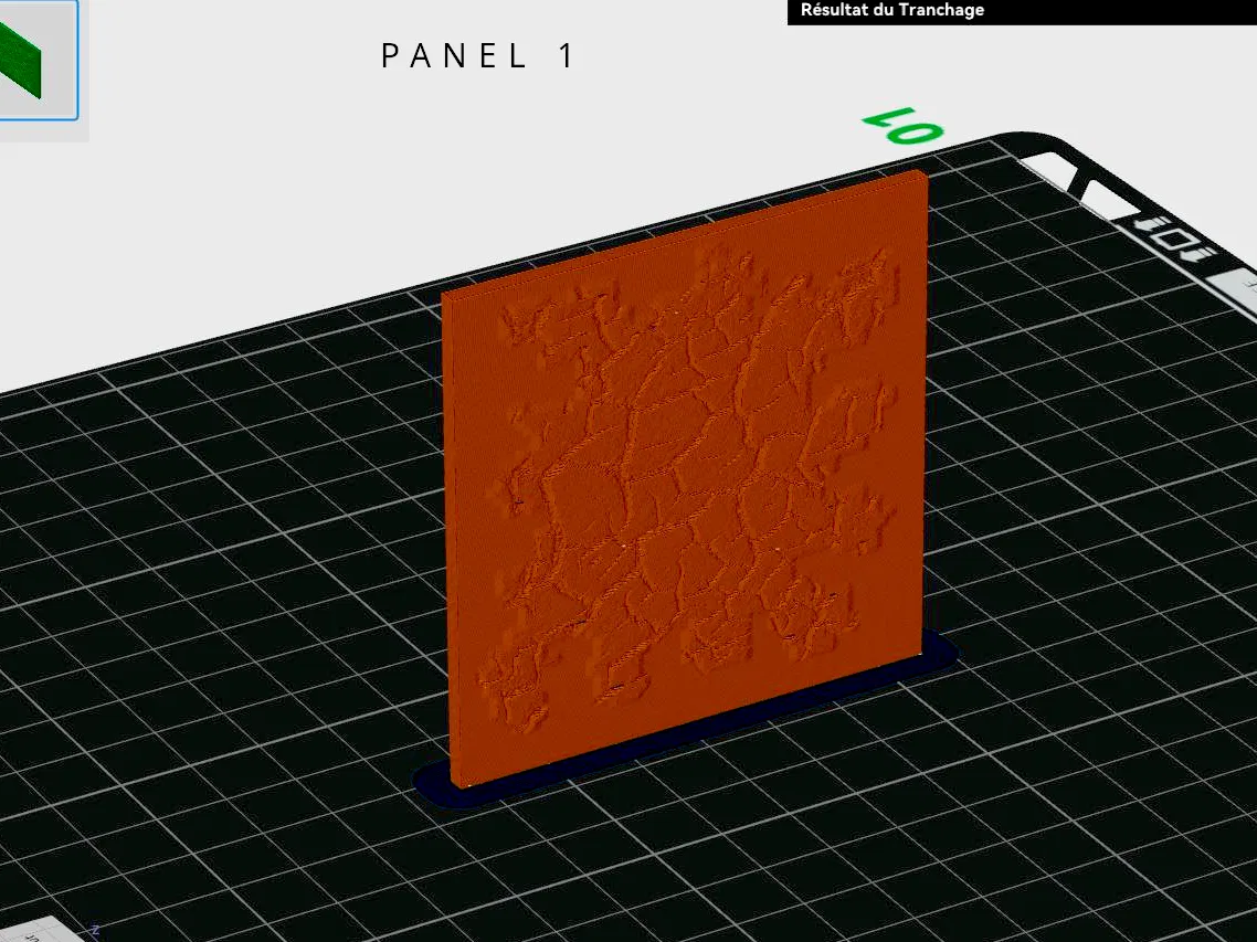 Adaptez vos vitesses suivant votre imprimante. Pour les panneaux je préconise une vitesse d’impression super lente 40 mm/s. Pourquoi ? La surface texturée aura un meilleur rendu si la tête d’impression a le temps de bien dessiner le relief.