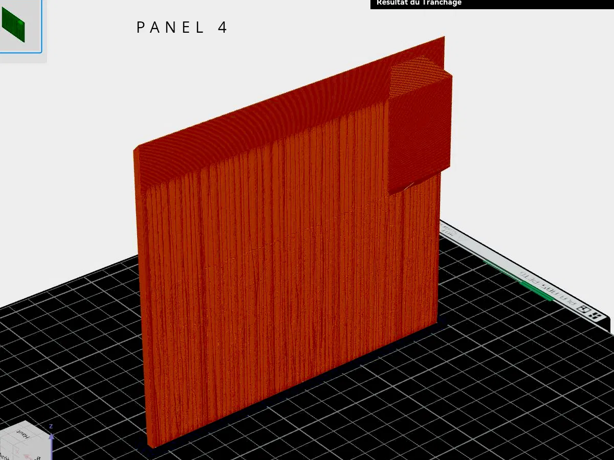 - Dans les fichiers .3MF vous aurez l'orientation précise de chacun des panneaux. Veillez à bien la respecter pour une impression correcte (voir aussi photos)
