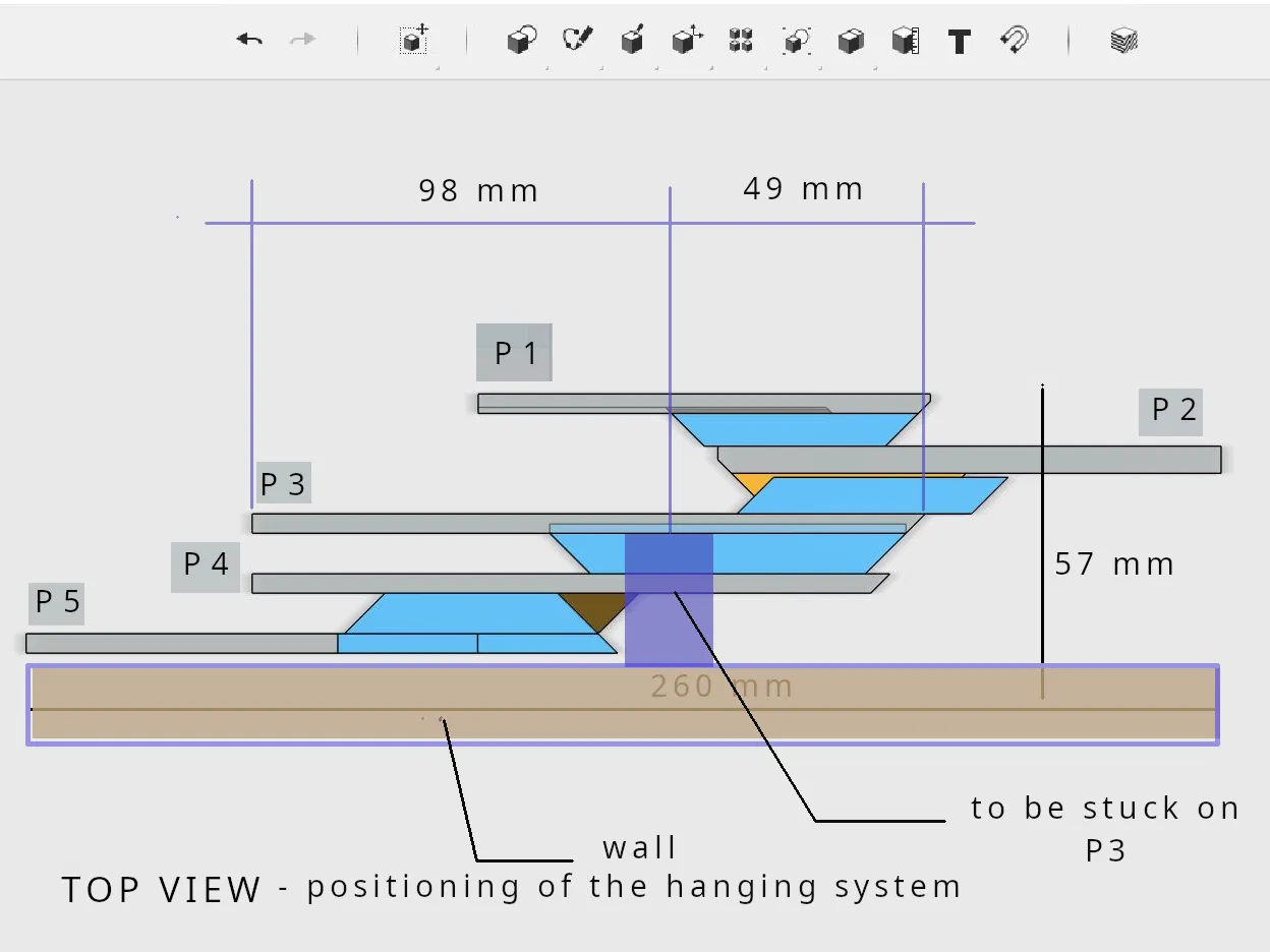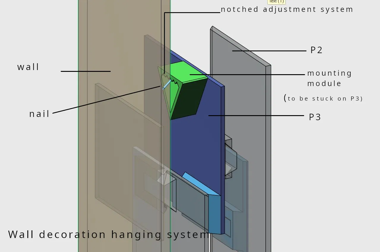 MISE à JOUR du 25/02/26 : Chose promise, chose due. J'ai ajouté le système d'accrochage qui consiste en un module cranté à imprimer ét à coller sur le panneau P3. Les indications de positionnement et la représenation 3d sont dans les photos.