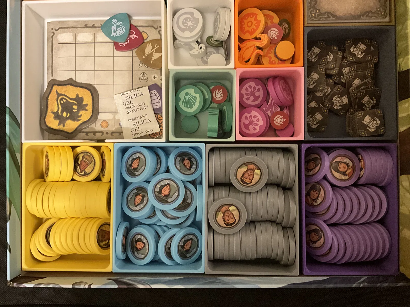 Một loại token capsule cho Hirelings. Hoàn toàn không cần thiết, nhưng mấy cái capsule này giúp Hirelings có cùng độ dày với Crest tokens của người chơi. In Grunt capsules (x50) màu xám, Scouts (x35) màu vàng, Rangers (x30) màu xanh dương, và Wardens (x30) màu tím.