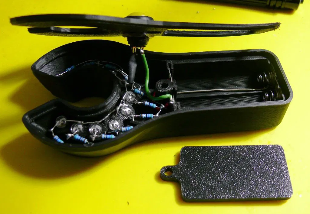Mình có chỉnh lại một số phần – ví dụ không cần phải cắt tỉa LED… Về pin mình dùng 2 viên 14500 LiIon mắc song song. – Xem instrucables để chọn điện trở (Resistor) phù hợp cho LED (tùy theo loại LED và điện áp).